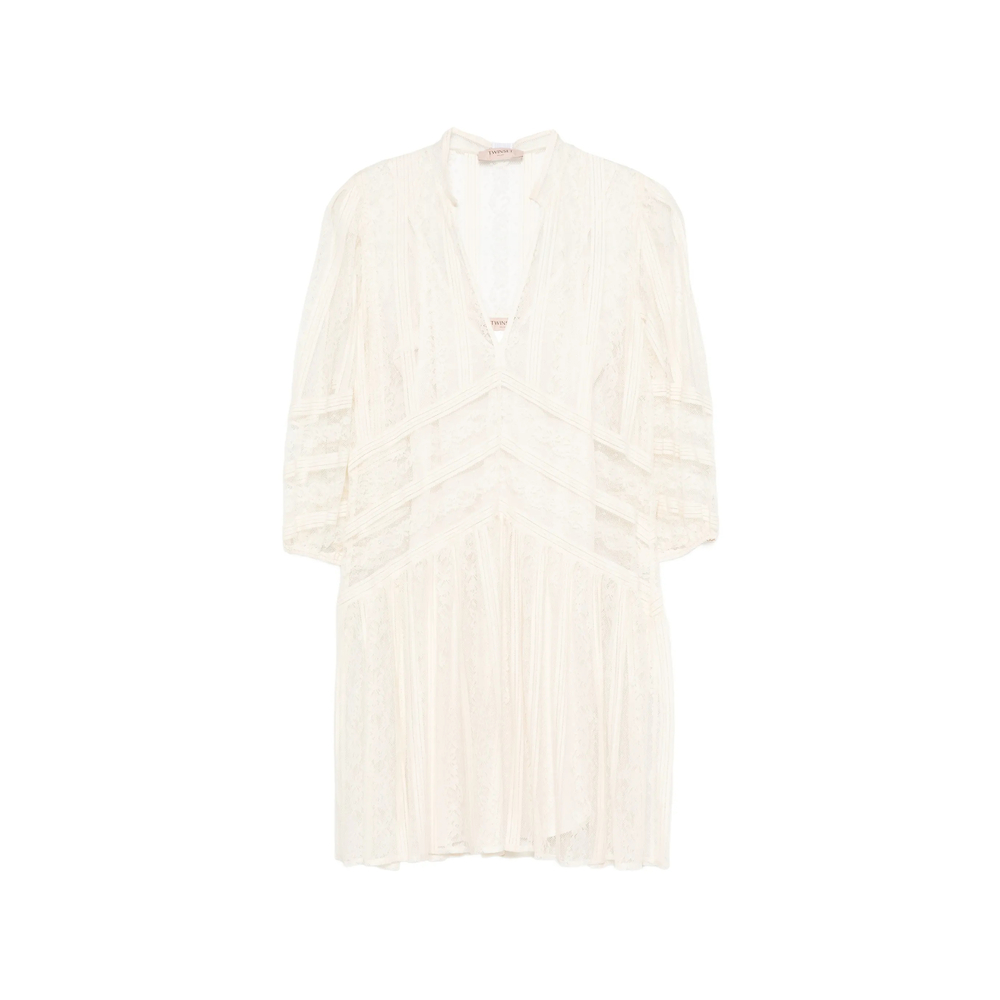 off-white lace design V-neck three-quarter sleeves paneled design