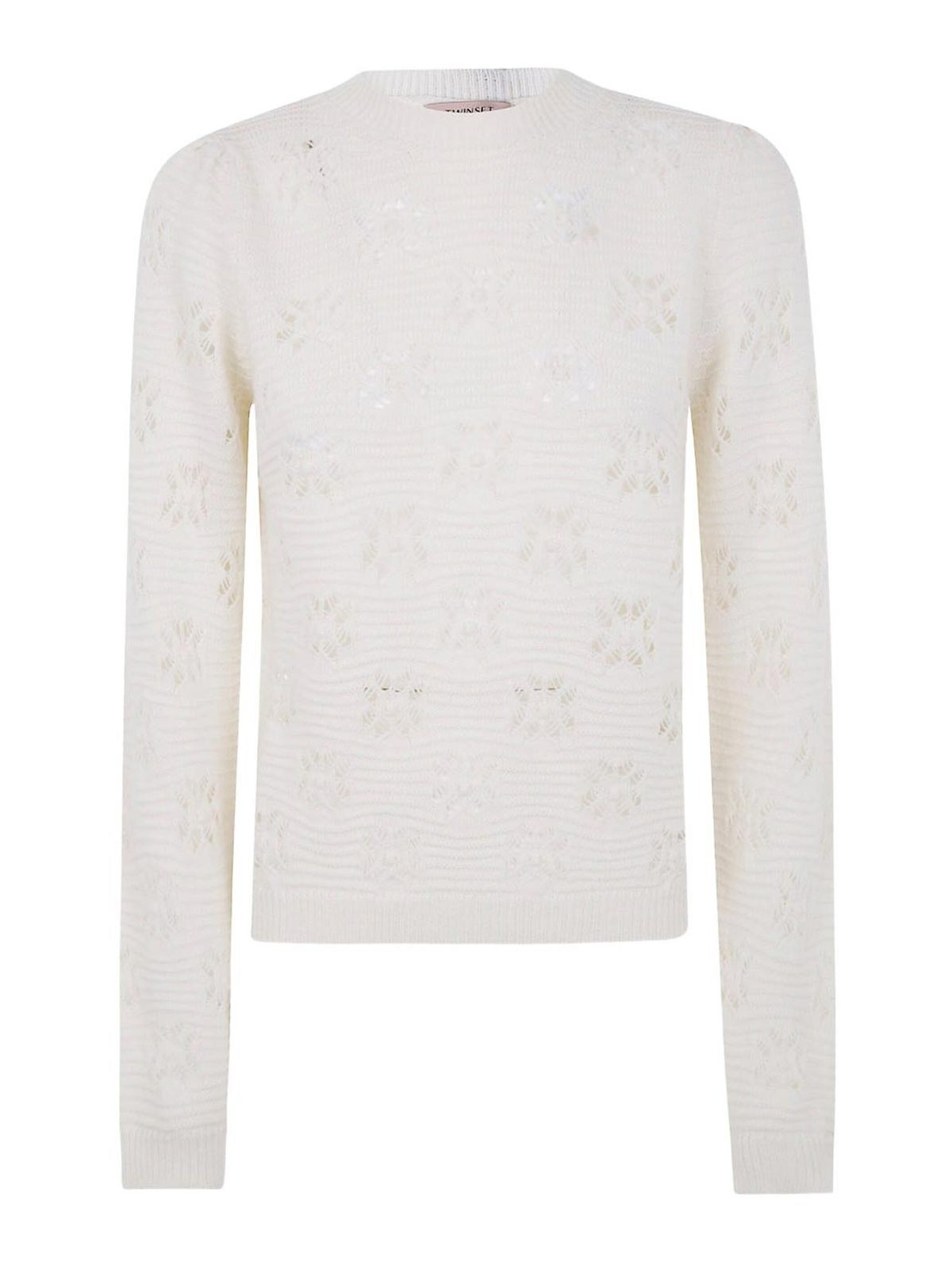 Fabrication blanche à points ouverts, encolure ronde et manches longues