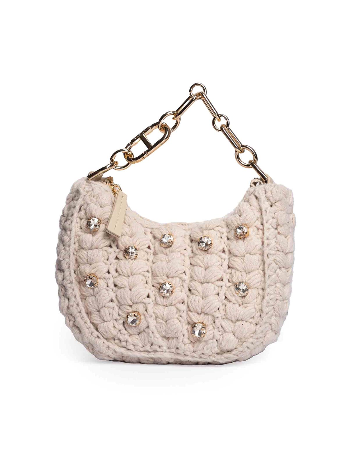 Chaîne à appliques en forme de cabochon avec fermeture éclair en tricot de coton mélangé, finition crochetée, ovale et doublée en T