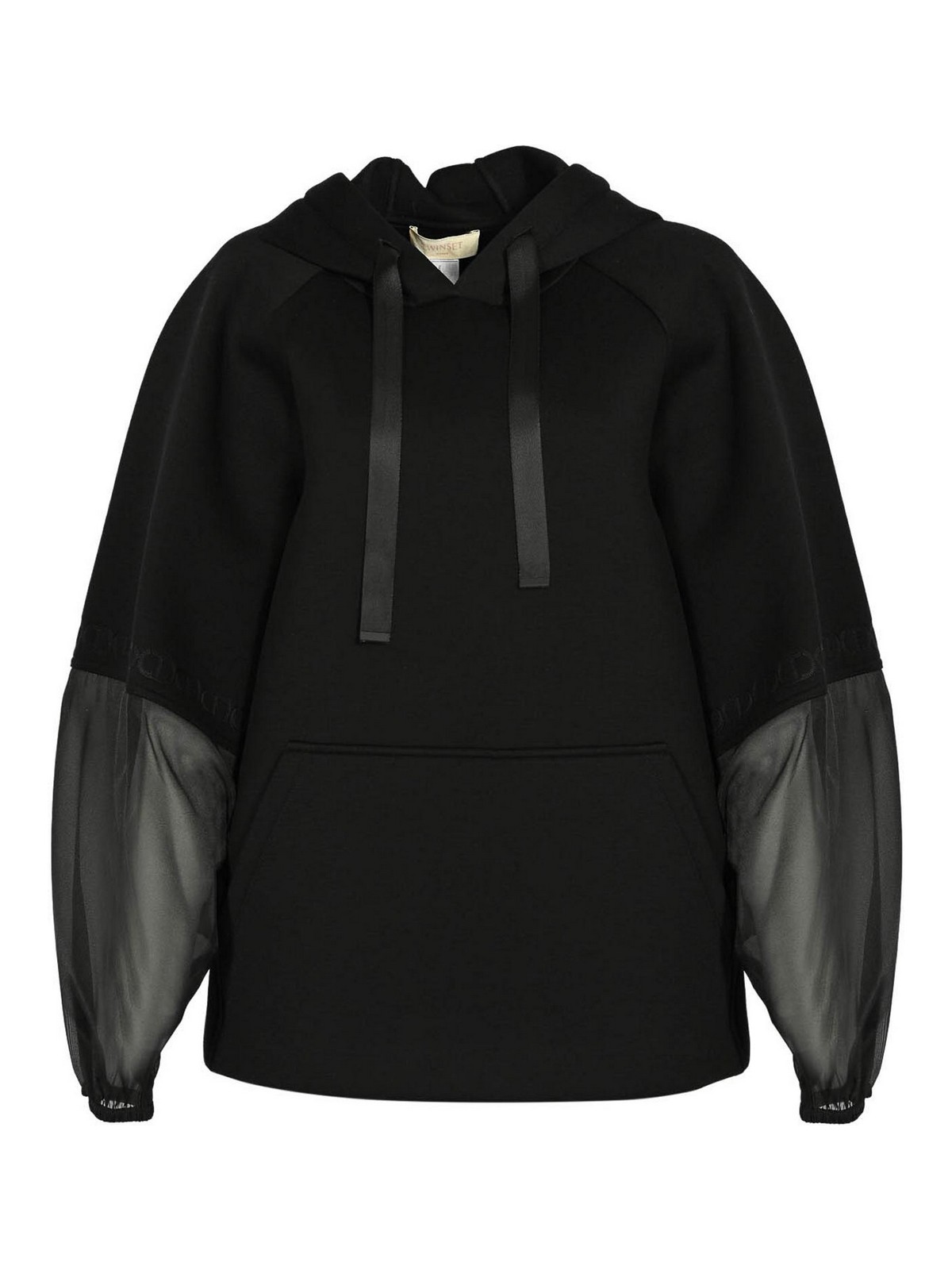 Manches longues en organza Scuba, col en V ovale sur les manches, capuche avec cordon de serrage ajustable, poche en gros-grain, coupe surdimensionnée