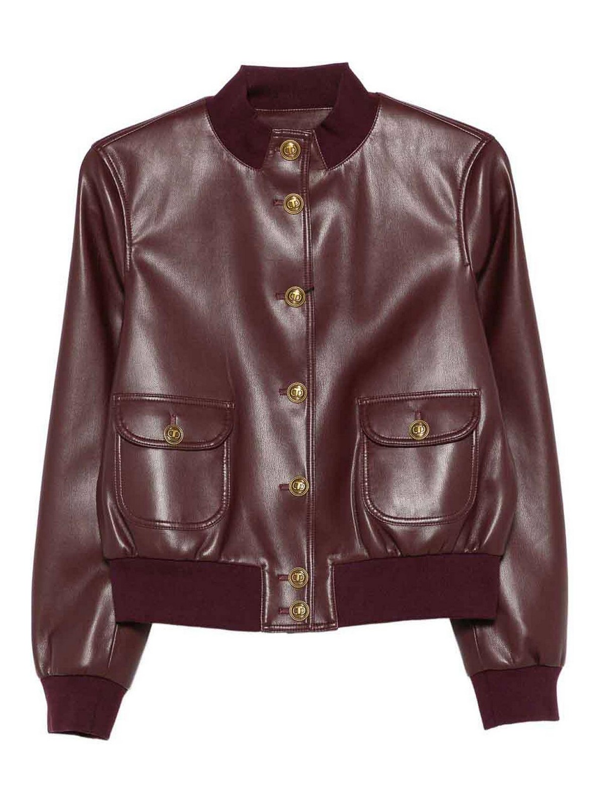 Bouton bordeaux, boutons ton sur ton, poches plaquées, ourlet côtelé, poignets côtelés, manches longues