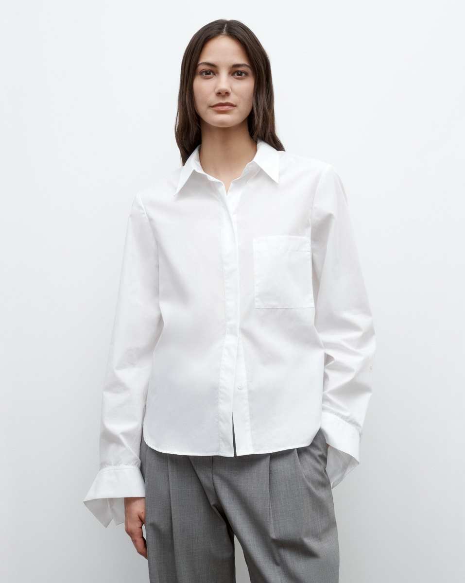 TWP’s signature button down crafted in superfine Italian cotton shirting. The Boyfriend is a relaxed fit complete with a chest patch pocket, concealed placket, curved hem, and staple single roll button cuffs.