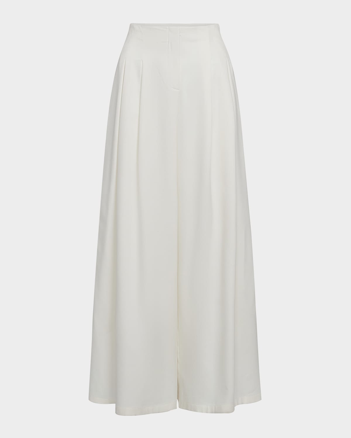 TWP "Drew" pants boast front pleats and an exaggerated silhouette High rise Side slip pockets Full length Wide legs Hookandbar/zip fly Cotton/wool/elastane Made in USA from imported materials