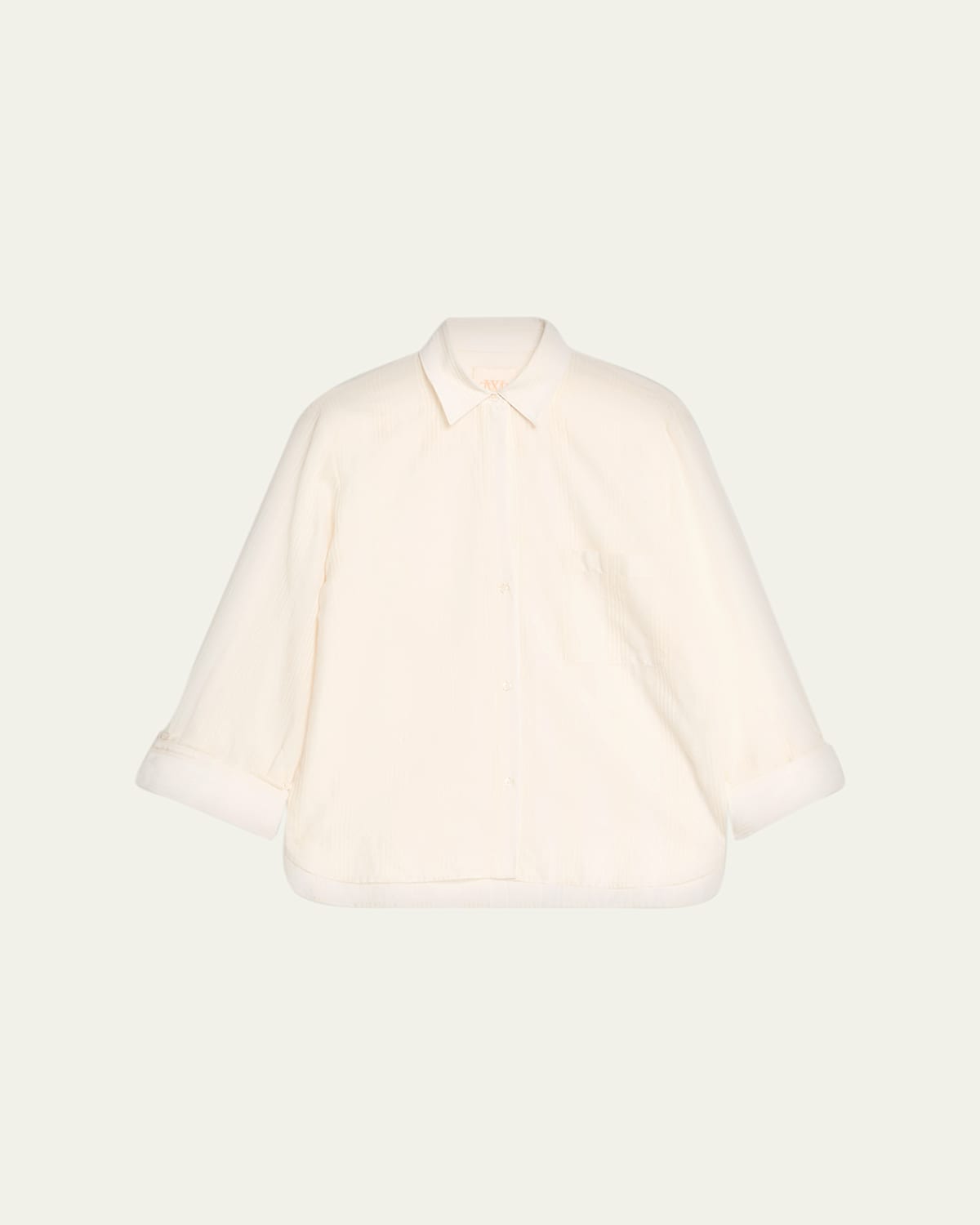 TWP "Next Morning" semisheer shirt in a striped design Approx. 26.3"L from shoulder to hem Spread collar Long sleeves; button cuffs Yoked back Relaxed fit Hip length Button front closure Cotton Dry clean Made in USA from imported materials