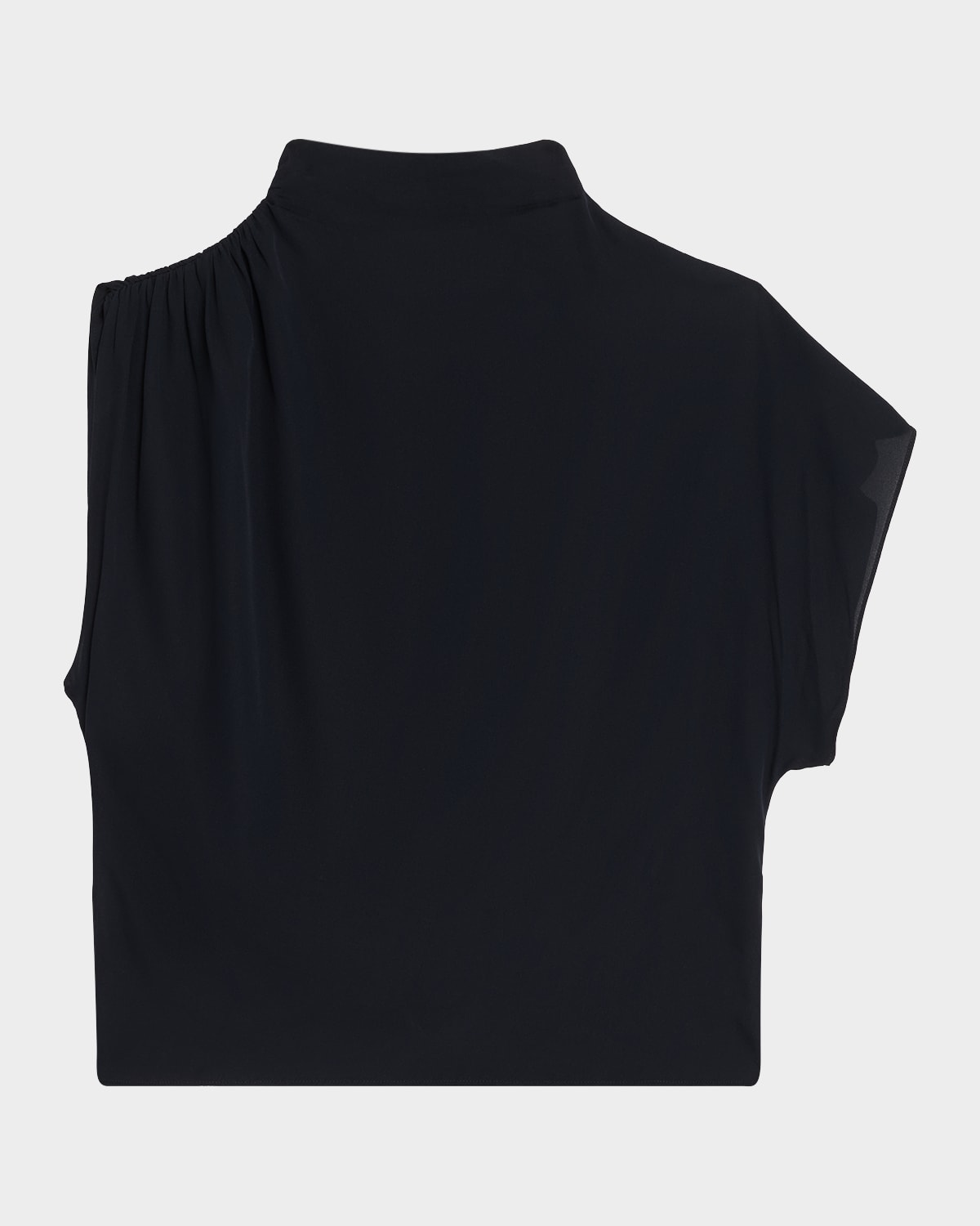 Elegantly draped from silk georgette, the "Wish You Would" blouse by TWP skims the body for a flattering fit Mock neckline Cap sleeves Loose fit Hip length Button placket at one shoulder Silk/spandex Imported