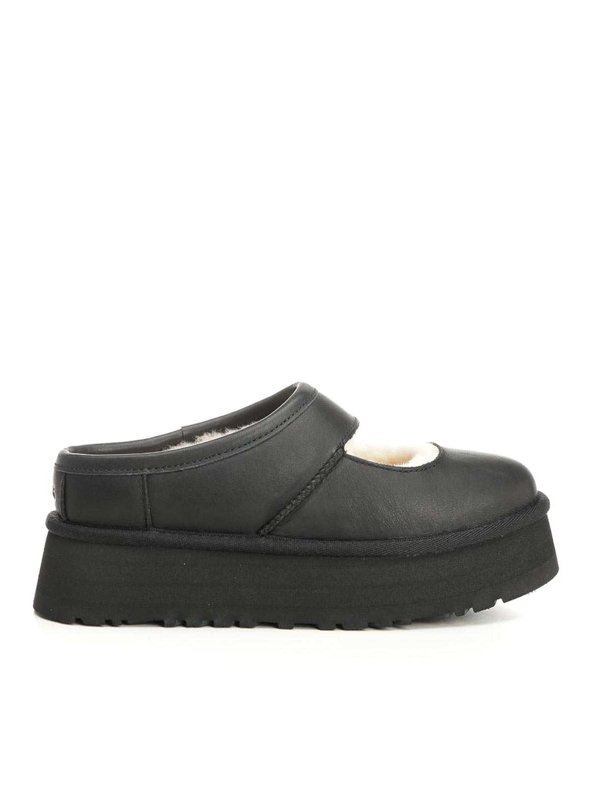 Bea Ugg Mary Jane avec col rembourré, assise plantaire en peluche, mousse à mi-canne à sucre, garniture extérieure, chaleur, logo Ugg embossé, étiquette tissée avec logo Ugg sur le