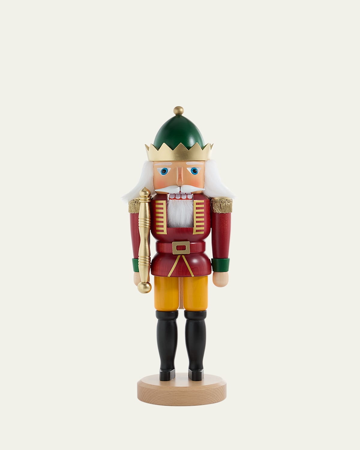 A stately and elegant king in royal garb, this nutcracker is painted with a beautiful interplay of colors. Handcrafted of wood and faux fur (polyester) Approx. 5.1"L x 4.9"W x 15.9"T Item Weight (Lbs.): 1.9 Dust with a soft cloth Made in Germany
