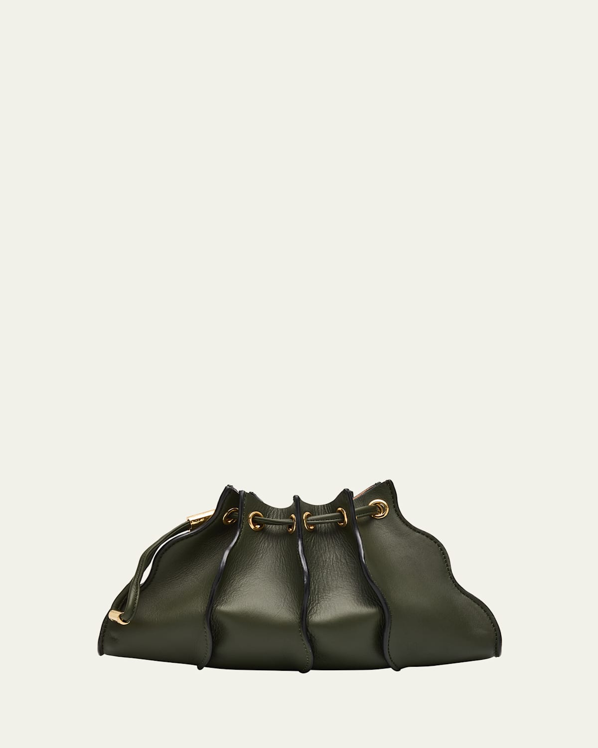 Crafted with sewntogether panels of leather, this Ulla Johnson "Adria" crossbody bag features a pleated, wavy silhouette finished with painted edges and hammered brass hardware Wristlet strap Detachable, adjustable crossbody strap, 21.7" drop Can be worn as a wristlet or crossbody bag Drawstring closure Lining: Suede Approx. 4"H x 6.1"W x 2.8"D Made in Italy
