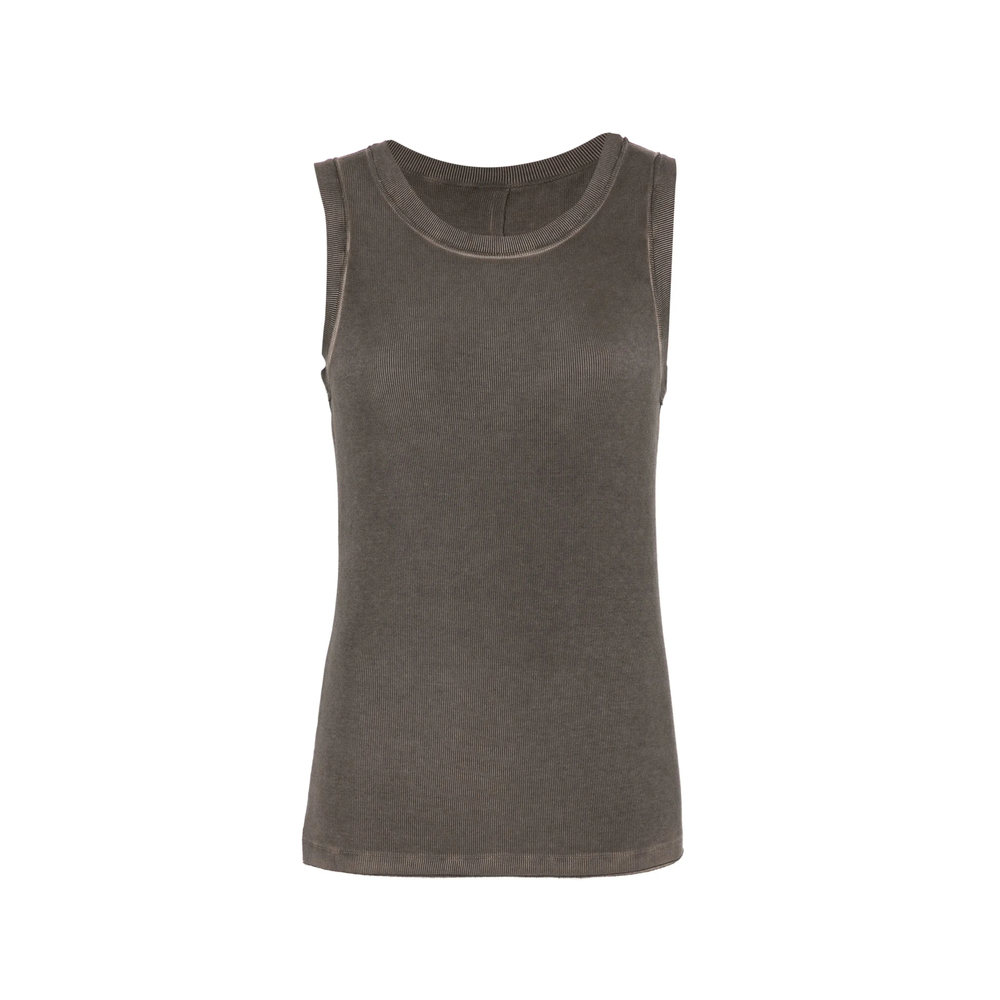 brown ribbed texture round neck sleeveless