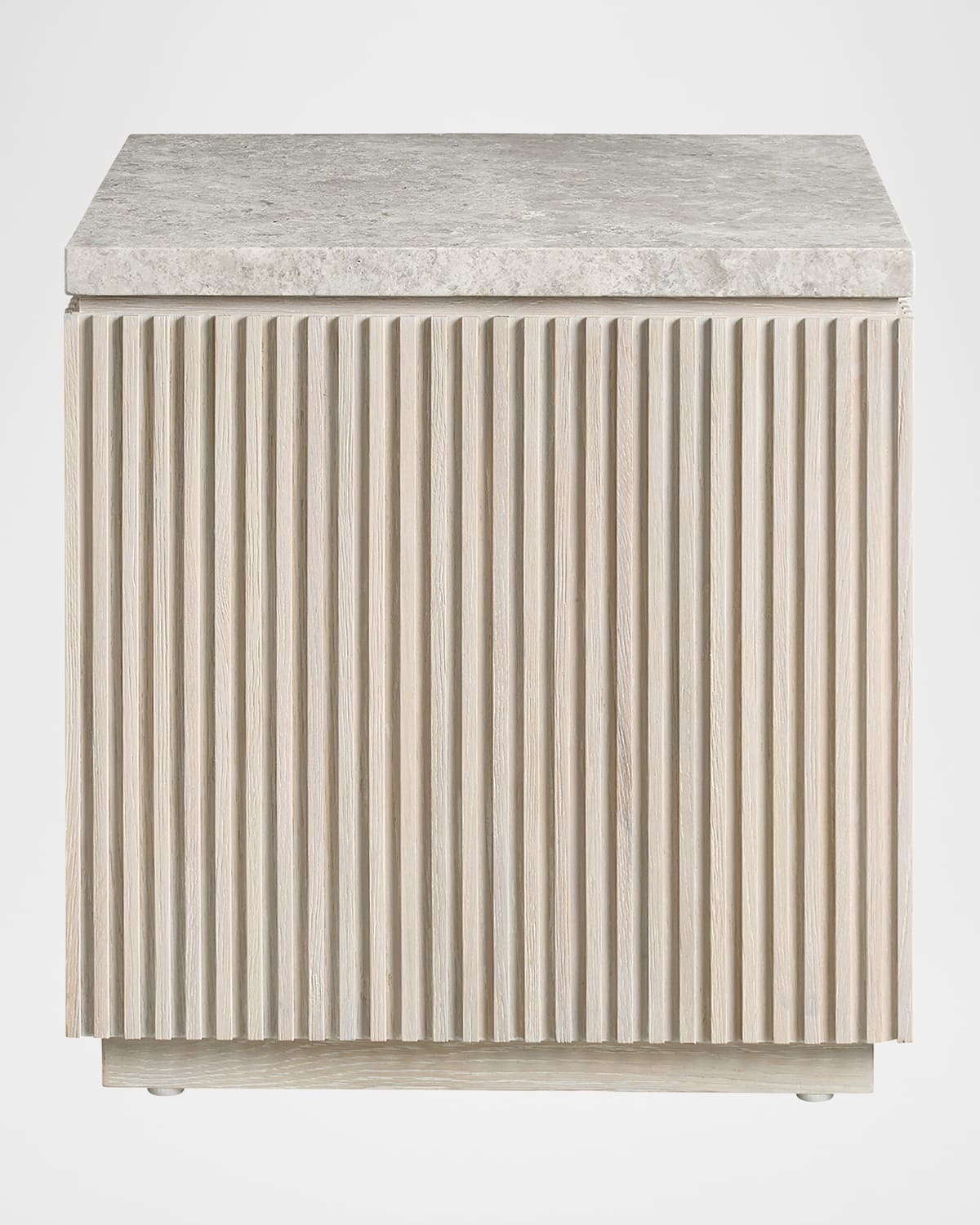 The Carmen Side Table, a striking piece of furniture, combines sleek lines with a unique square silhouette. Its textured, vertical design, reminiscent of natural elements, is juxtaposed with a smooth stone top. This captivating contrast and its versatile design make it a perfect addition to any interior space. Crafted of engineered hardwood, oak veneer, and marble From the Avaline Collection Overall, approx. 22"Sq. x 22"T Wipe clean Weight, 79.0 lbs Imported Boxed weight, approximately 93.0 lbs