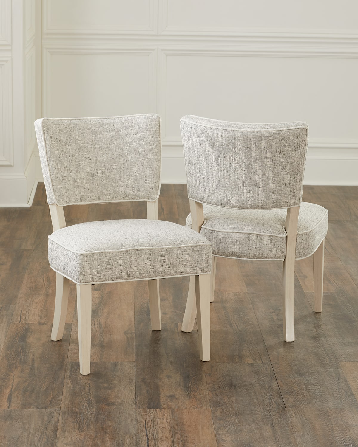 Featuring a lushly upholstered seat and back with crisply tapered legs, this side chair brings quiet comfort and an airy refinement to living areas. Handcrafted of engineered hardwood, polyester, and cotton Overall, approx. 20"W x 23"D x 34"T Seat, 19"D x 19"T Finished back Weight, 15.0 lbs Set of two Imported Boxed weight, approximately 46.0 lbs