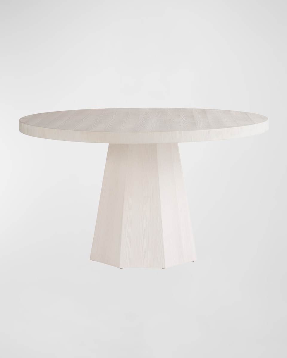 Add unmatched eloquence to dining spaces with the Mackinaw Round Dining Table. Handcrafted of engineered hardwood Includes one 20" leaf to extend width to 74" Overall, approx. 54"Dia. x 30"T Assembly required; includes hardware Finished back Weight, 194.0 lbs Imported Boxed weight, approximately 242.0 lbs