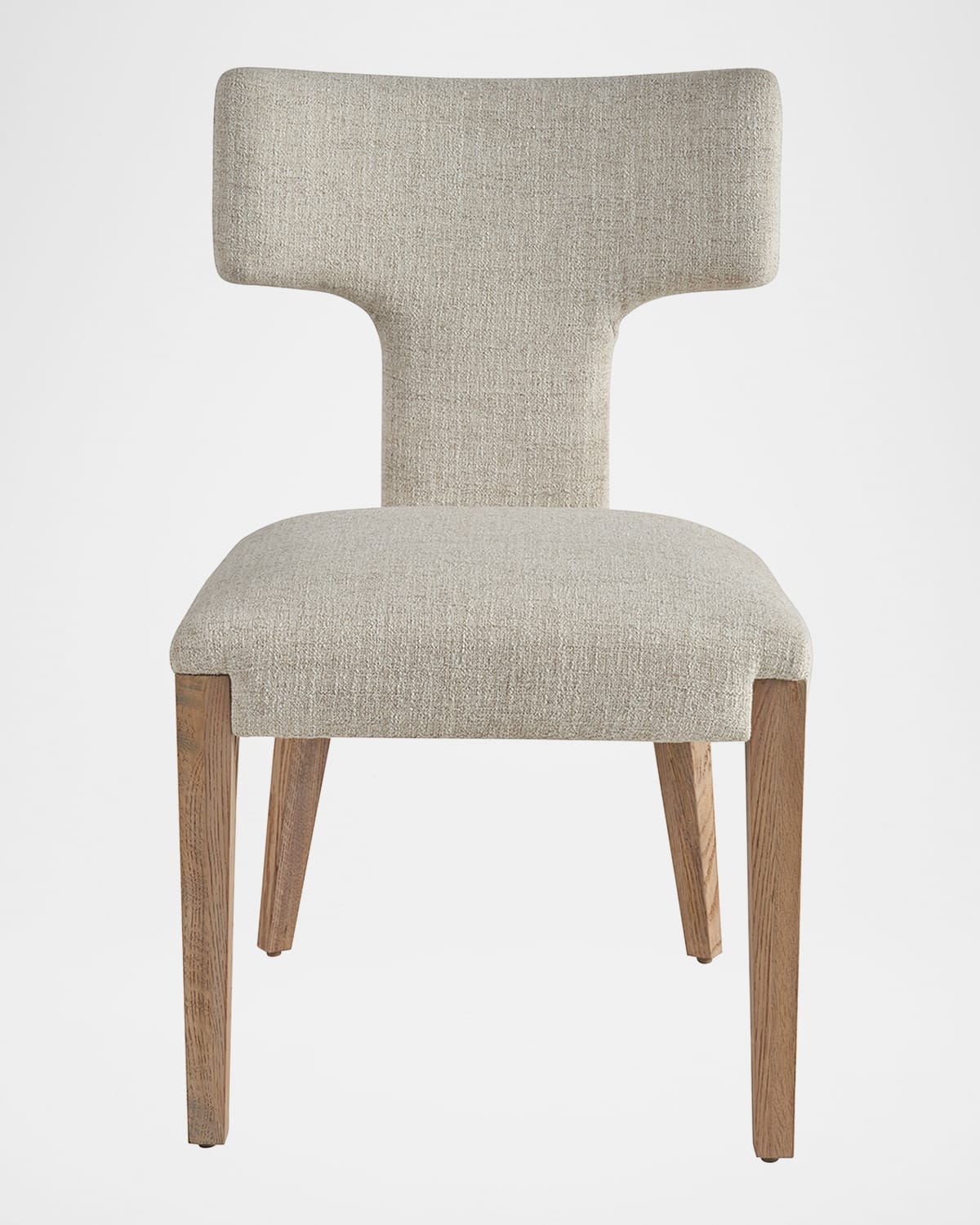 The Raen Side Chair is a captivating blend of modern design and classic comfort. Its fully upholstered body, paired with slender wooden legs, creates a striking silhouette. The distinctive Tshaped back adds a touch of sophistication, making this chair a timeless piece for any dining room. Crafted of oak wood and polyester Highdensity foam fill Overall, approx. 21"W x 24"D x 34"T Seat, 20.75"W x 19"D x 19.25"T Wipe clean Weight, 40.0 lbs Set of two Imported Boxed weight, approximately 50.0 lbs