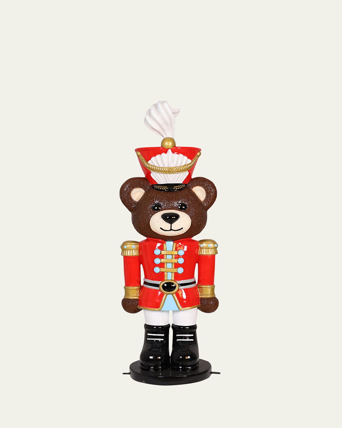 Picture the enchanting blend of a teddy bear and a nutcracker in the Teddy Bear Nutcracker. This charming figure unites two beloved Christmas icons, making it an essential addition to your holiday decor. The teddy bear, symbolizing comfort and joy, and the nutcracker, the timeless guardian of holiday treats, together create a whimsical and heartwarming presence in any Christmas display. Make sure to add this cherished piece to your festive decorations. Made of fiberglass and resin Approx. 20.2"L x 15.6"D x 58.3"T Item Weight (Lbs.): 31.0 For indoor and outdoor use Imported