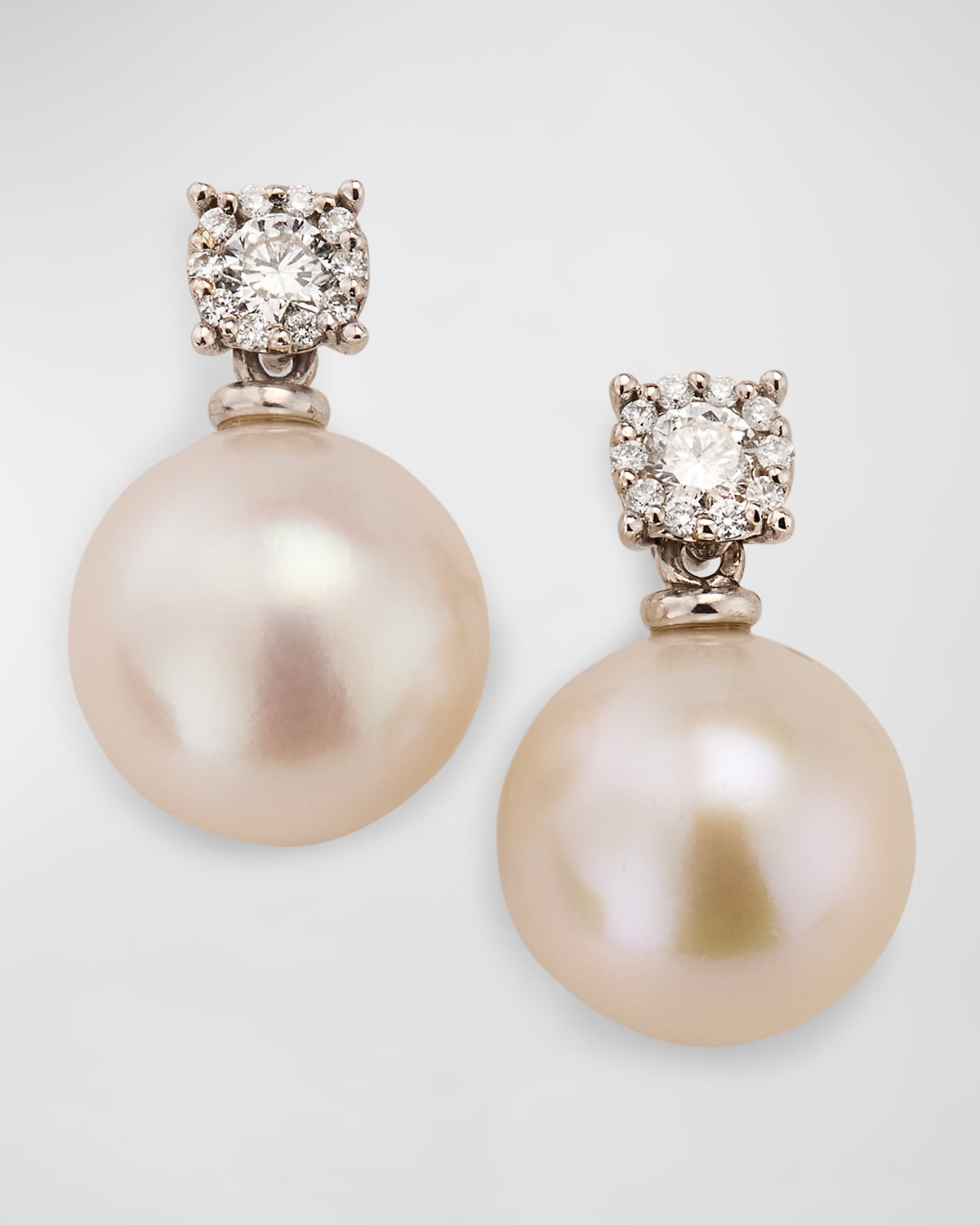Utopia drop earrings 18karat solid white gold Naturallywhite freshwater pearls (10mm) 22 round white diamonds; 0.28 total carat weight For pierced ears Made in Italy