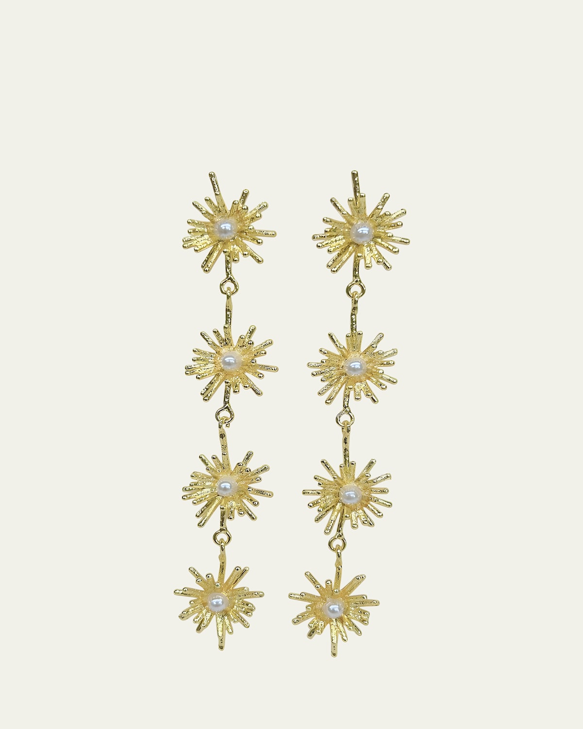 V.BELLAN earrings Approx. 4"L 18karat yellow goldfilled brass Cubic zirconia and genuine freshwater pearls For pierced ears Spot clean Made in USA