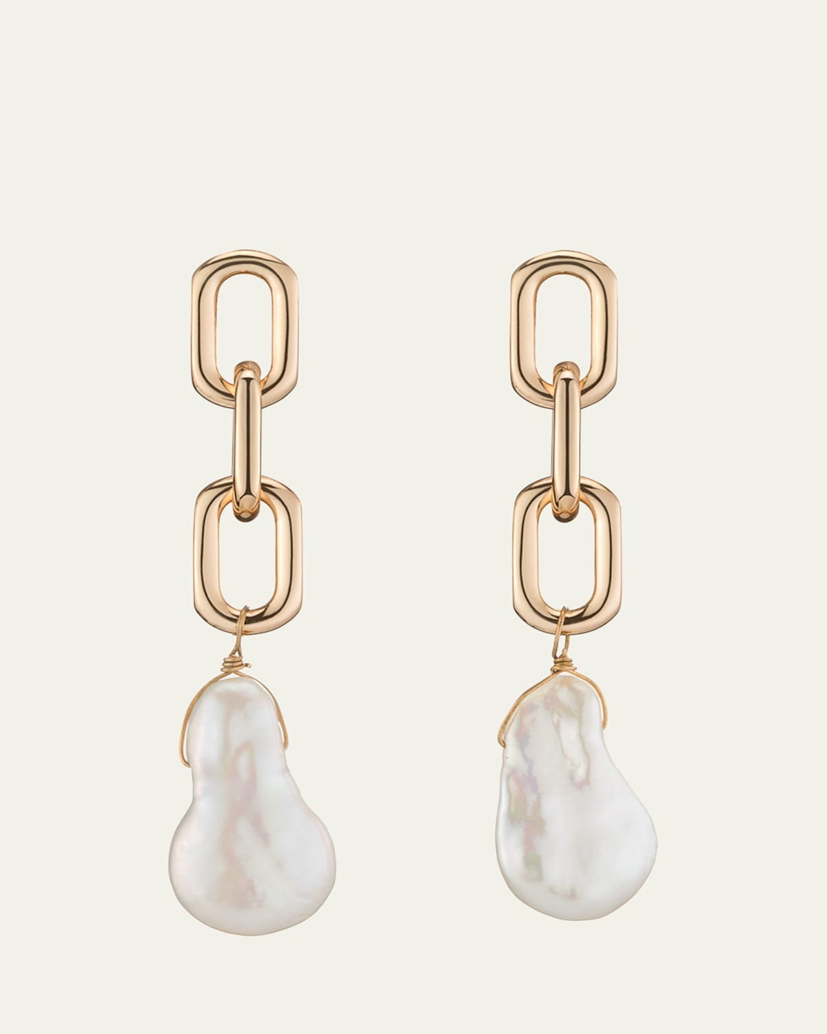 V.BELLAN lightweight chain drop earrings 18karat gold vermeil over sterling silver Naturallywhite freshwater natural pearls For pierced ears Wipe clean Made in USA