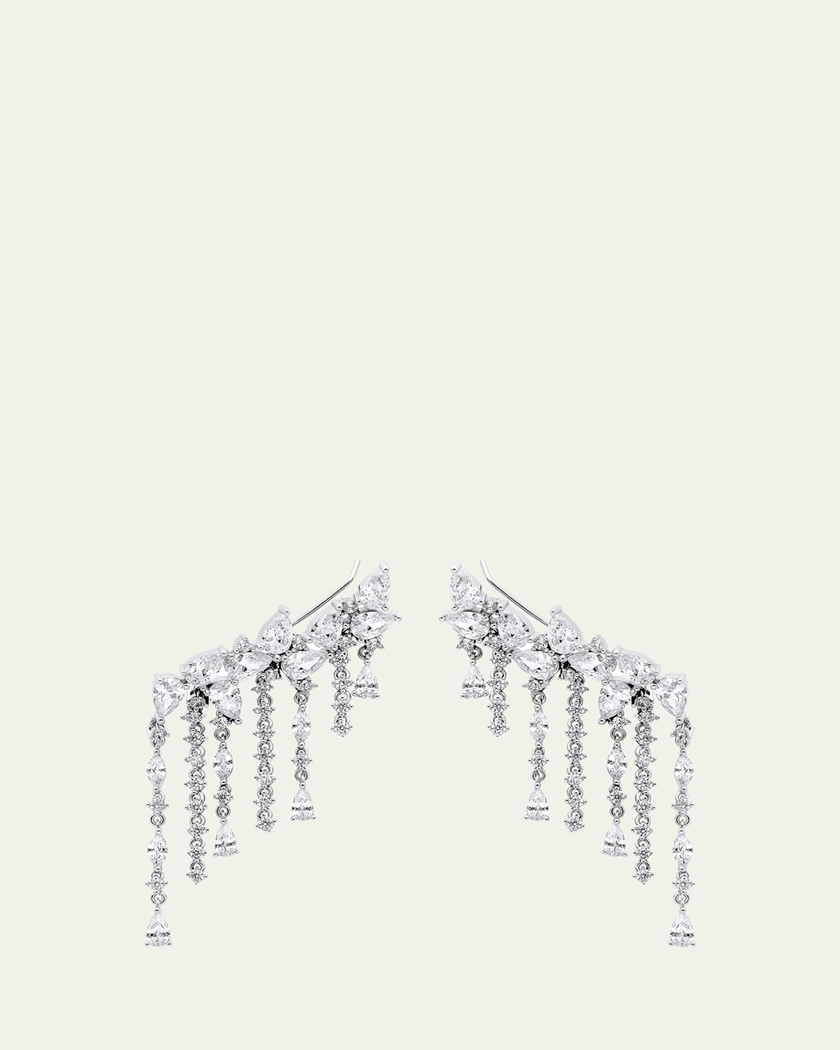 V.BELLAN "Gizelle" earrings Approx. 2"L Sterling silver Cubic zirconia For pierced ears Wipe clean Made in USA