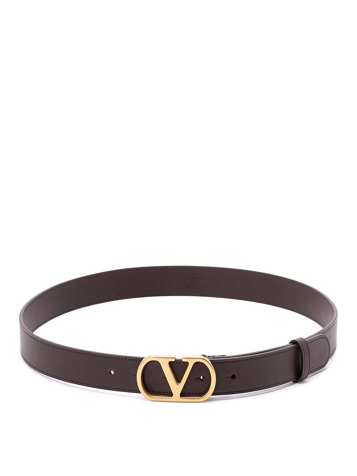 couleur design: brun chêne, cuir de veau, finition lisse, détails dorés, boucle à logo sur le devant, fermeture à boucle ardillon.