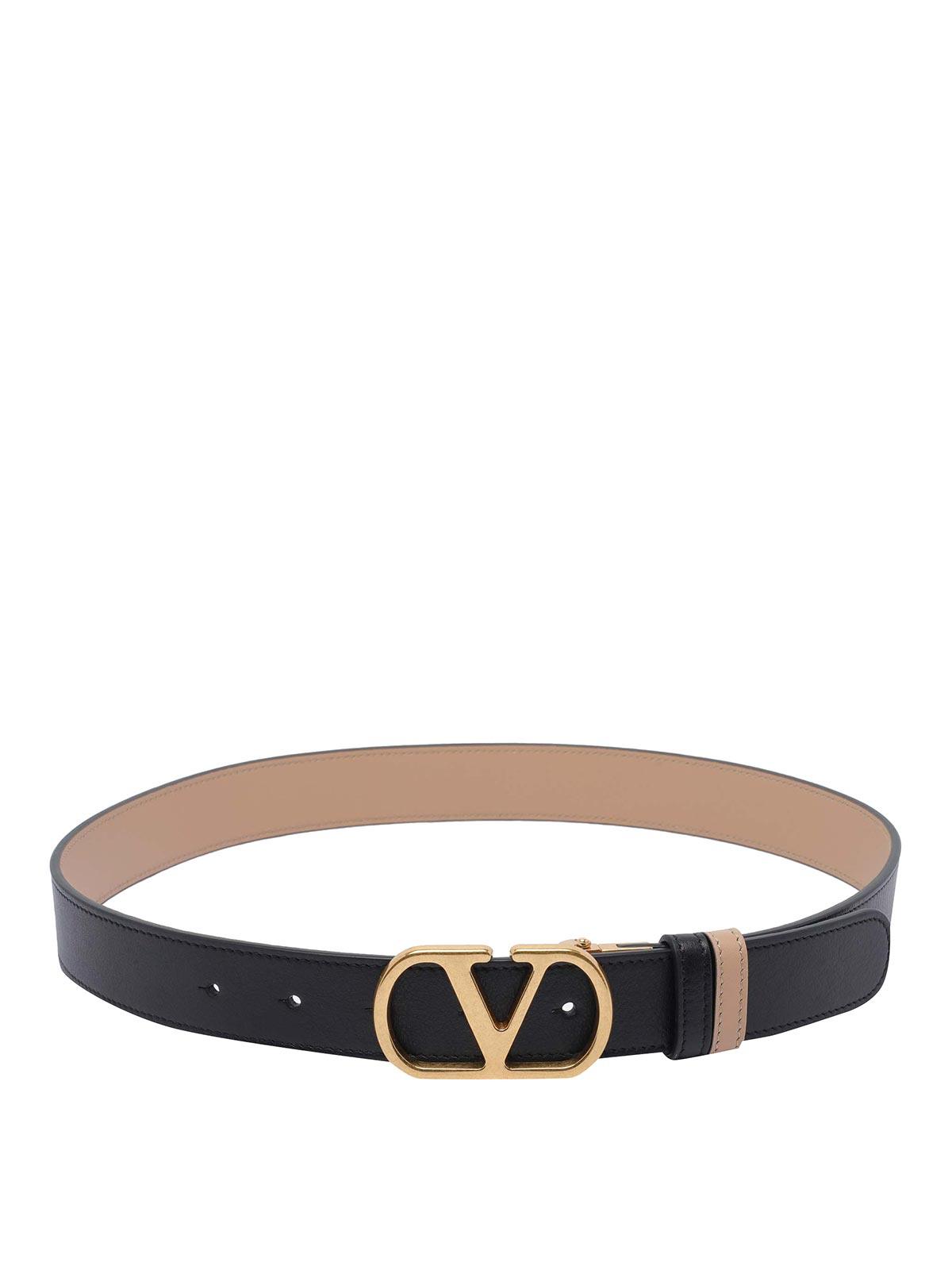 Ceinture à logo Vlogo noir et roses Valentino Garavani Modèle réversible Nom de la couleur du créateur: noir