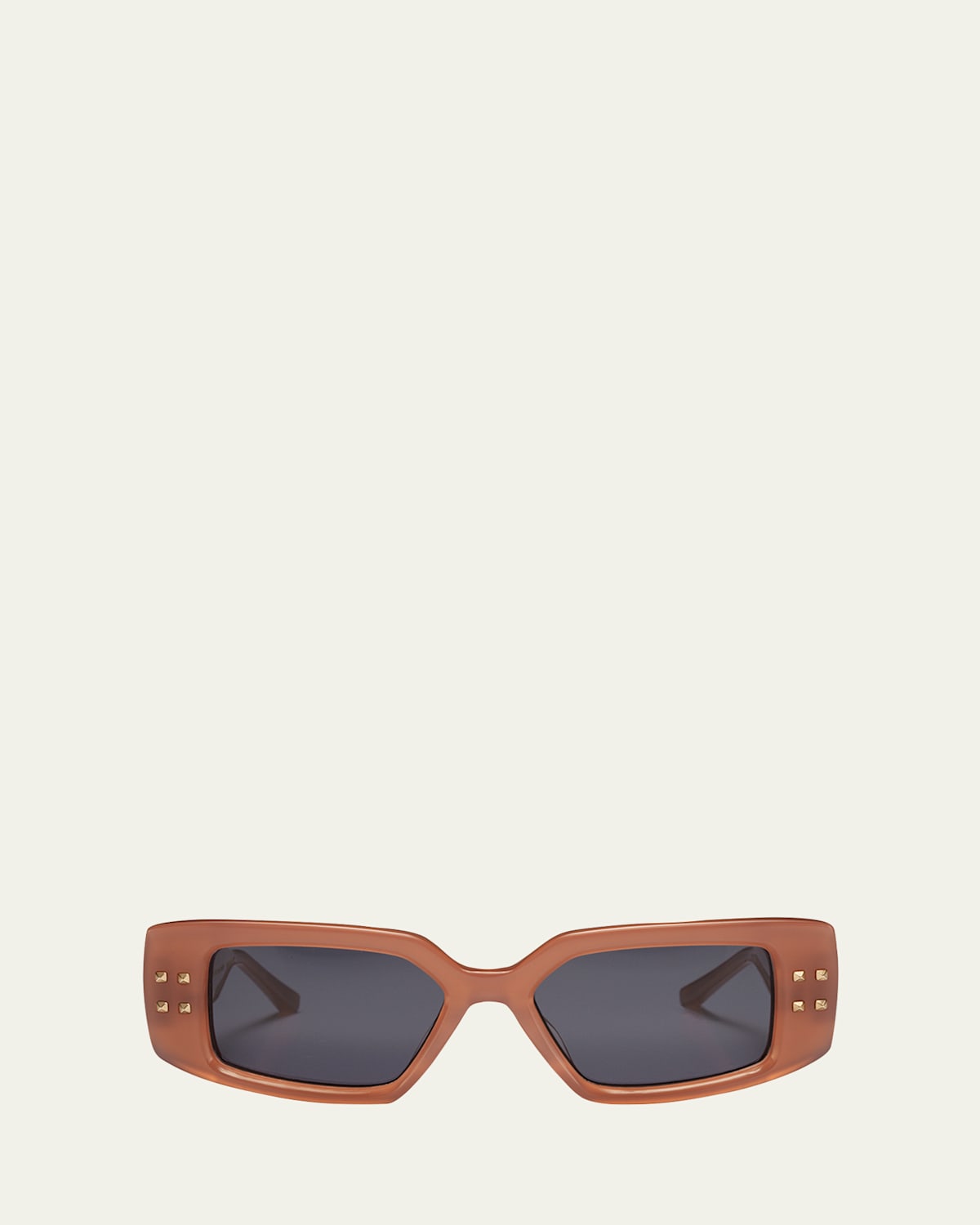 Valentino Garavani "Cinque" rectangle sunglasses in acetate and lightweight titanium frames Solid lenses Saddle nose bridge Stud accents on frames and temples Thin, tapered arms Logo accent on earpieces 100% UVA/UVB protection Made in Japan