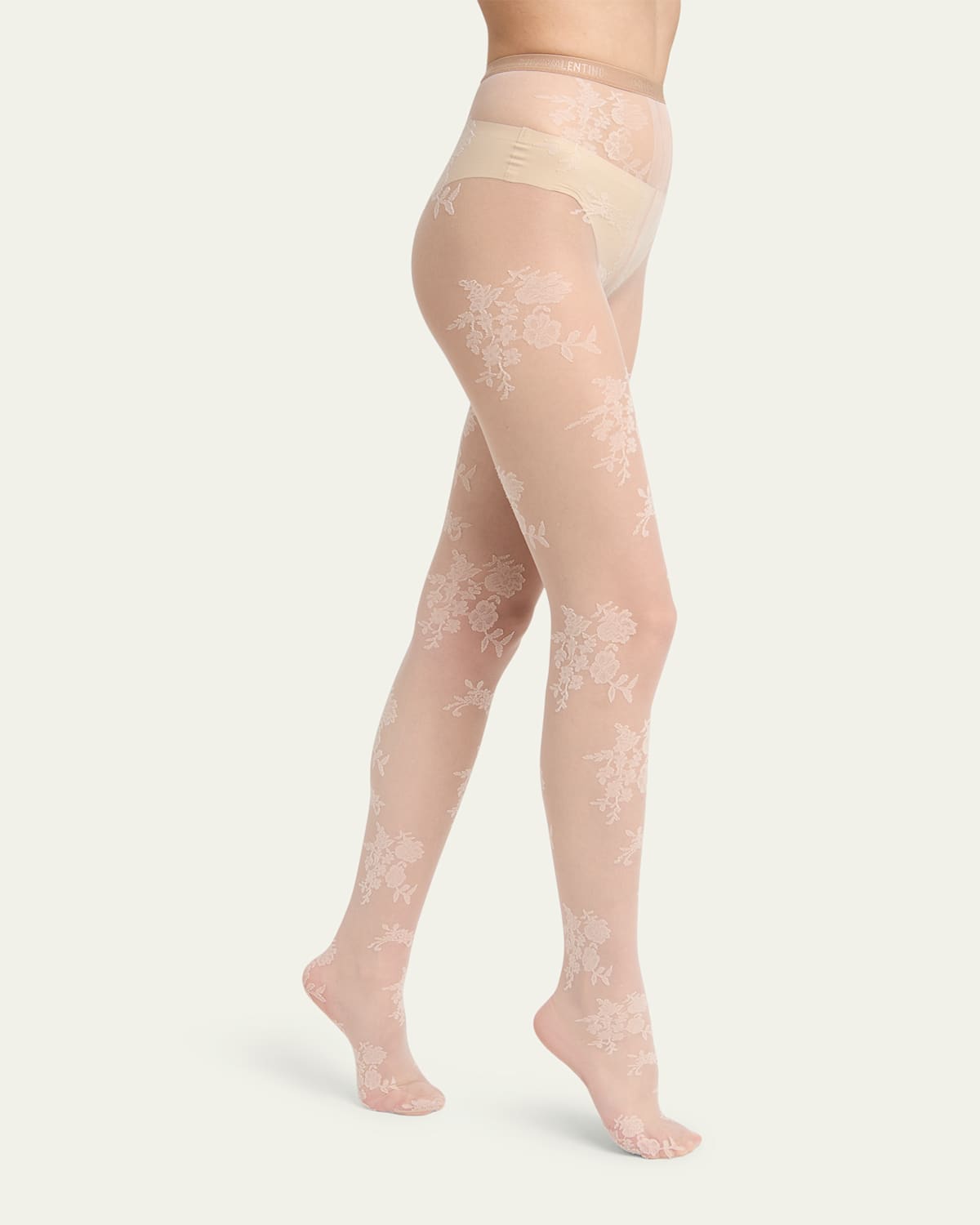 Valentino Garavani "Collant" lace tights featuring an elasticized logo waistband High rise Soft knit waistband Pullon style Nylon/polyamide/elastane Made in Italy