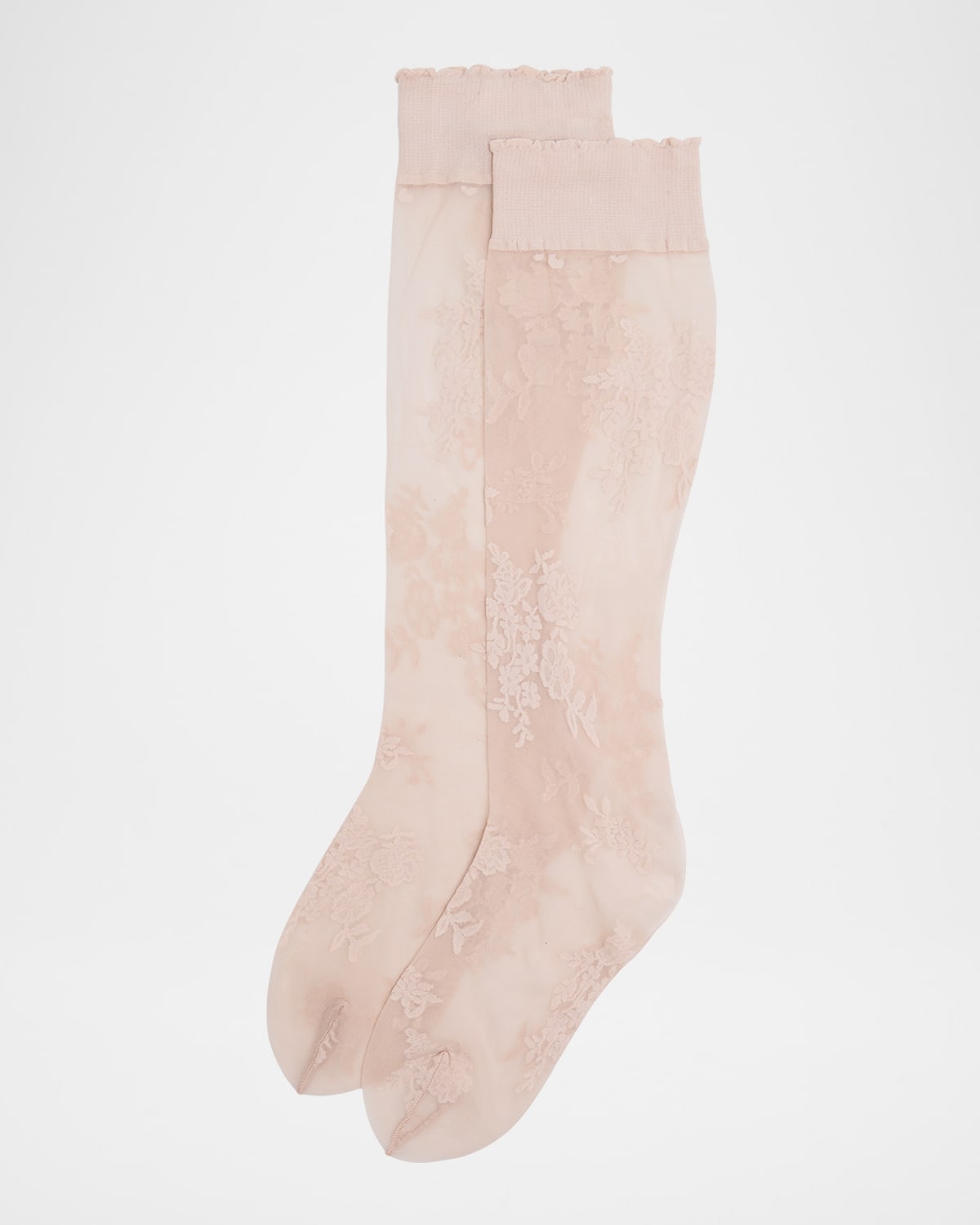 Valentino Garavani socks are crafted of delicate sheer lace Ribbed cuffs with lettuce edge to prevent slipping Nylon/polyamide/elastane Made in Italy