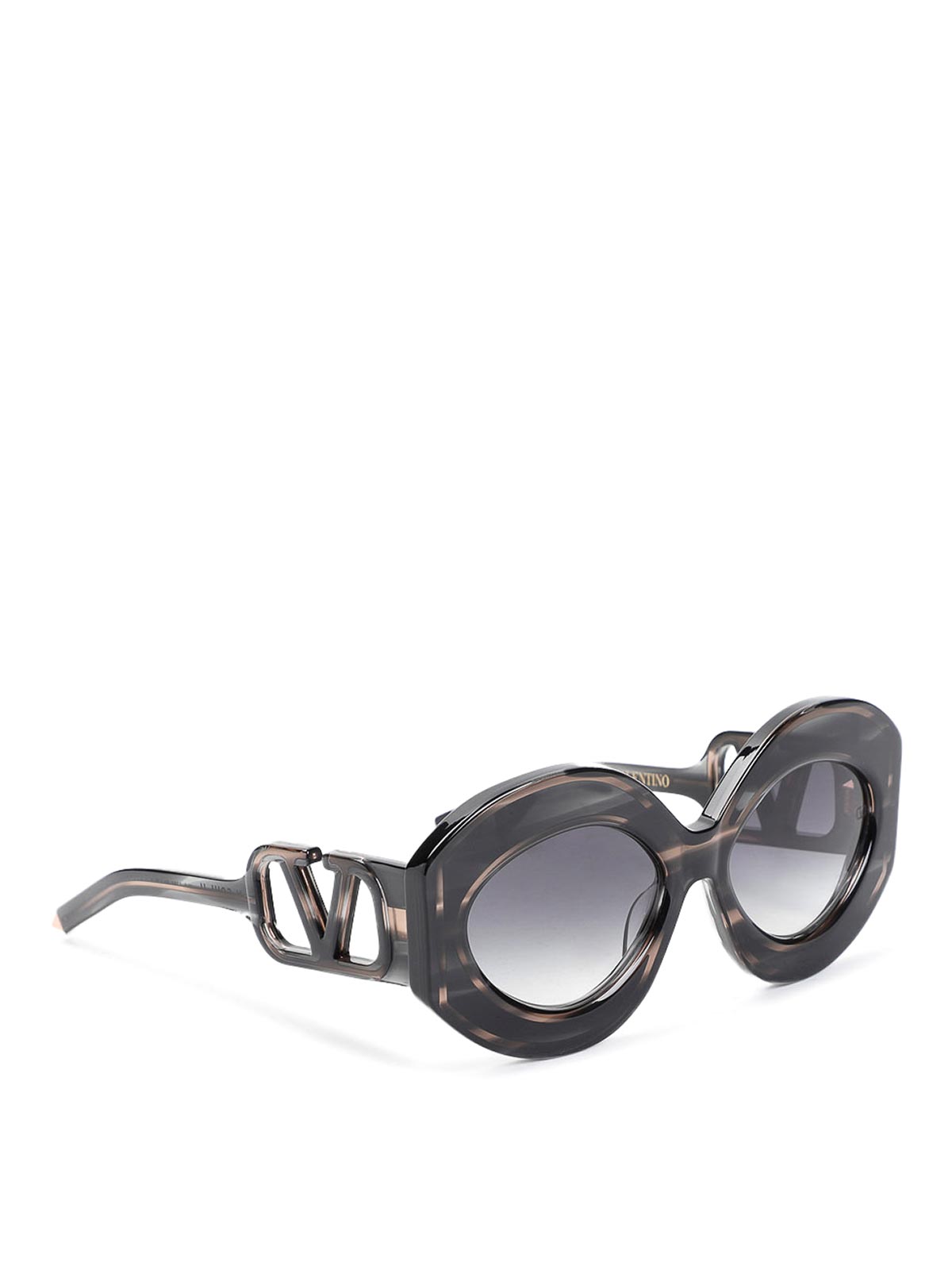 Lunettes de soleil Valentino V, Soul II noires et noires fabriquées en noir et monture ronde, verres gris façonnés, V ton sur ton, logo sur les branches