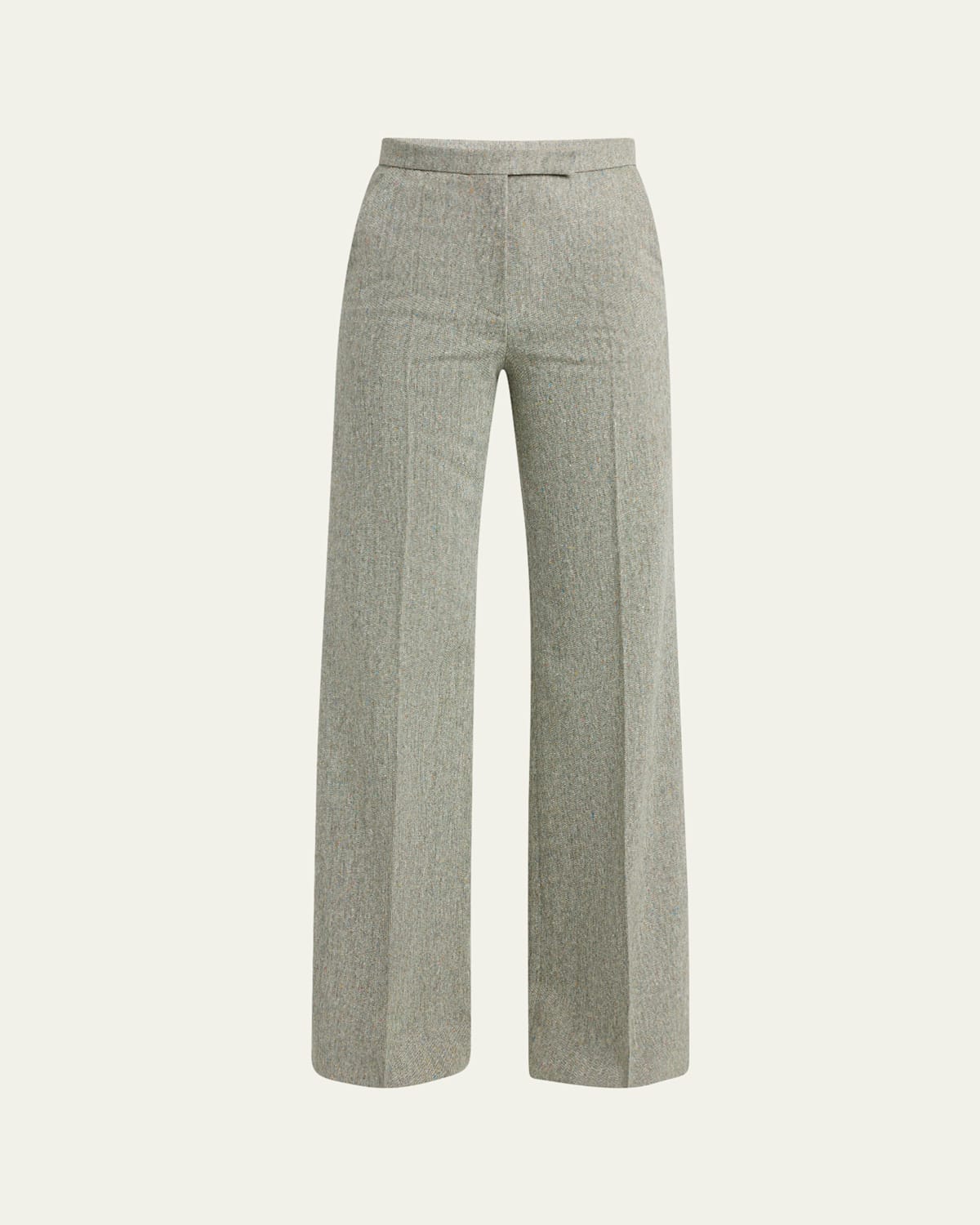 Finished with legelongating vertical front and back pleating, these trousers by Valentino Garavani are crafted from a tailored wool blend for endless versatility High rise Slanted side and back welt pockets Full length Relaxed, straight legs Hidden hook/zip fly Virgin wool/nylon/polyamide Made in Italy
