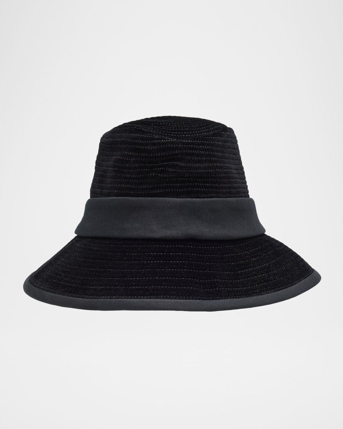 Valentino Garavani topstitched bucket hat embellished with a velvet strap Flat crown Downturned brim VLogo Signature accent on strap Grosgrain inner ribbon with logo fabric label Cotton Made in Italy