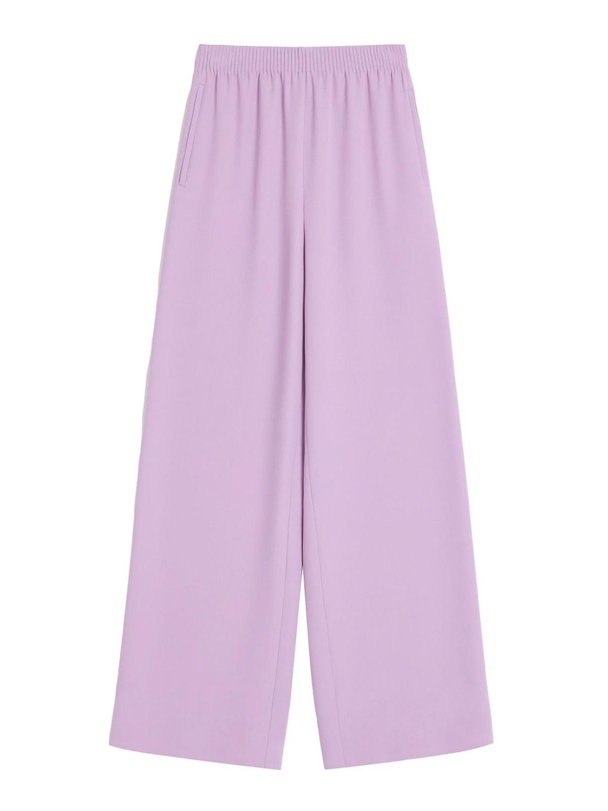 Ceinture élastiquée en soie mauve lilas et deux poches fendues latérales, design évasé