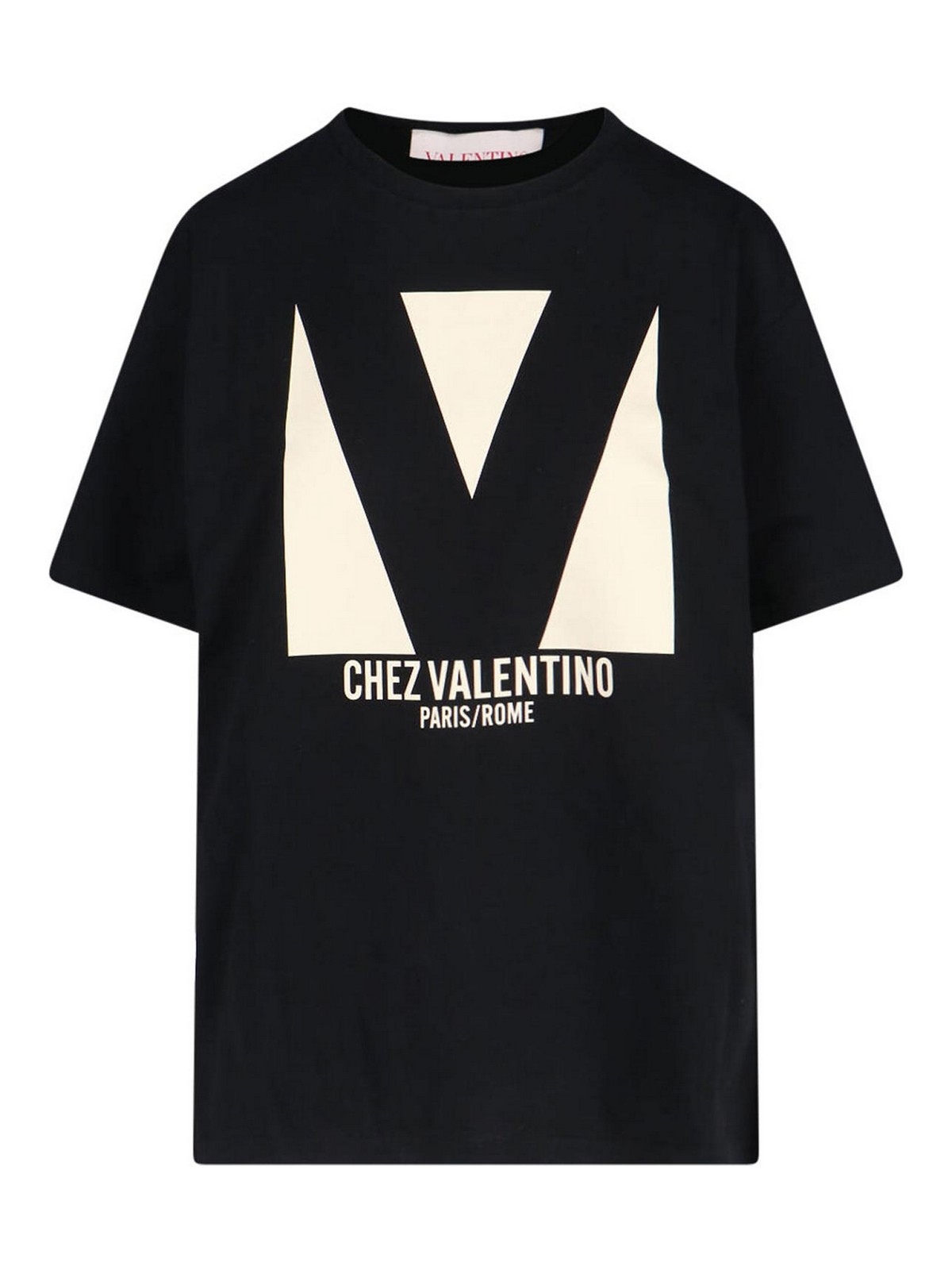 T-shirt chez Valentino Nero Girocollo Maniche Corte Stampa Logo a Fronte Orlo Dritto