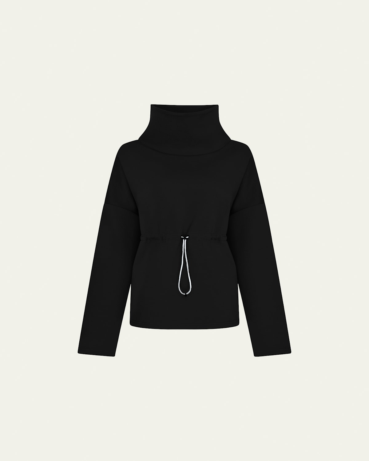 Varley "Barton Sweat" doublefaced sweatshirt in cottonblend with collar that folds down. Mock neckline. Long sleeves. Adjustable tie cinches waist. Relaxed silhouette. Pullover style. Cotton/polyester/spandex. Machine wash. Imported.