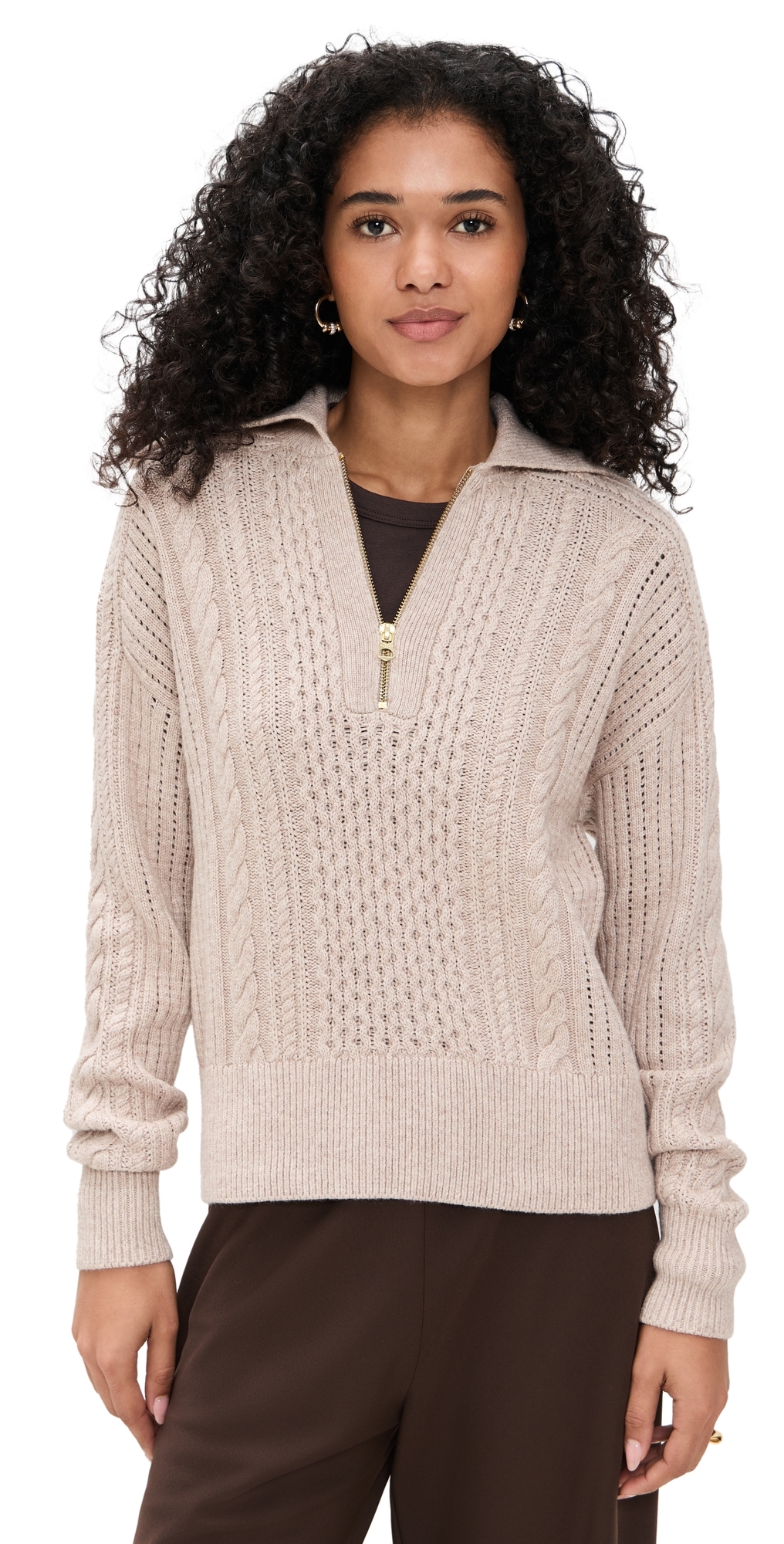 Fabric: Lightweight cable knit with stretch. Ribbed trim. Collared neck. Long sleeves with dropped shoulders. Quarter zip. Shell: 33% viscose/23% polyamide/20% cotton/20% merino wool/4% cashmere. Dry clean. Imported, China. Measurements: Measurements from size XS Length: 22.5in / 57.0cm, from shoulder