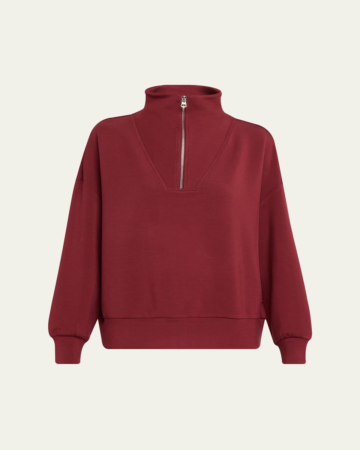 Varley "Hawley" sweatshirt in signature Doublesoft fabric features a paneled halfzip neck Stand collar Dropped shoulders Long sleeves Relaxed fit Banded cuffs and hem Pullover style Viscose/polyester/elastane Imported