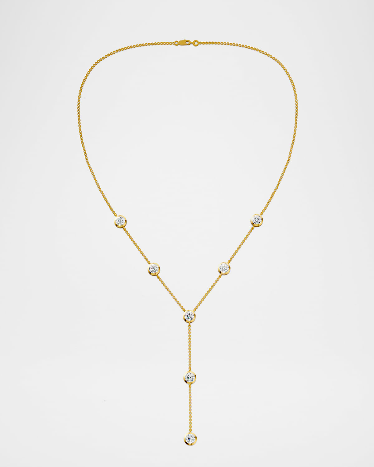 Lab Grown Diamond 18K Yellow Gold 7 Bezel Y Necklace