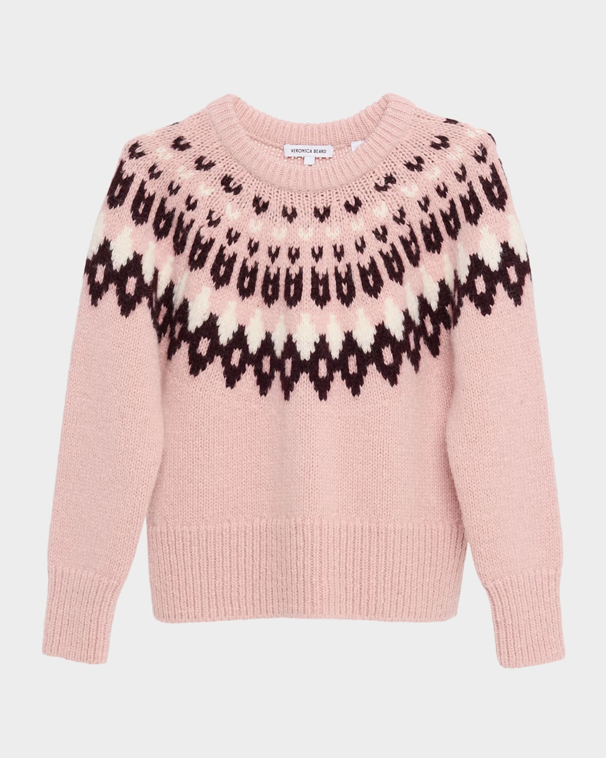 Veronica Beard "Anne" soft wool sweater decorated with classic fairisle motif Crew neckline Long raglan sleeves; approx. 28.3"L Relaxed fit Hem falls to the hip Pullover style Wool Unlined Dry clean Imported