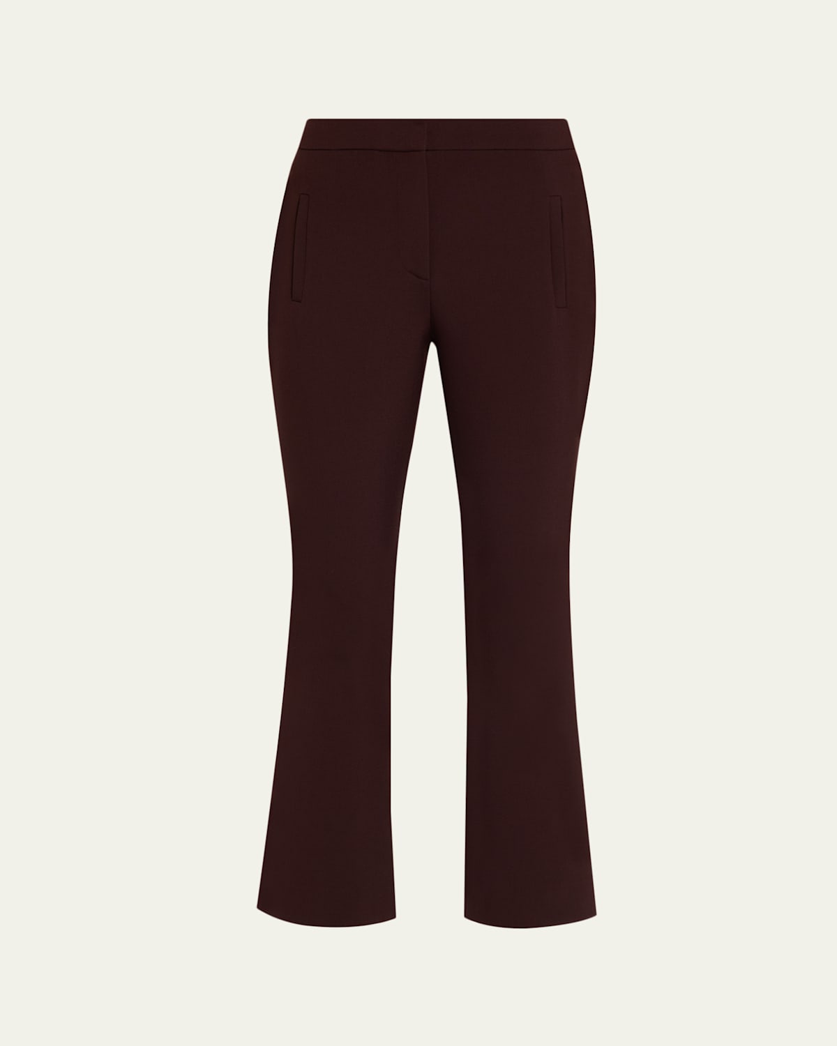 A signature Veronica Beard silhouette, the "Arte" pants, now updated in a rich red wine hue, are crafted from suiting fabric with subtle stretch. Approx. 10" rise; 27" inseam High rise Front and back welt pockets Fitted through the hip and thigh Cropped length Hook/zip fly; belt loops Polyester/viscose/cotton Lining: Polyester Dry clean Made in USA from imported materials