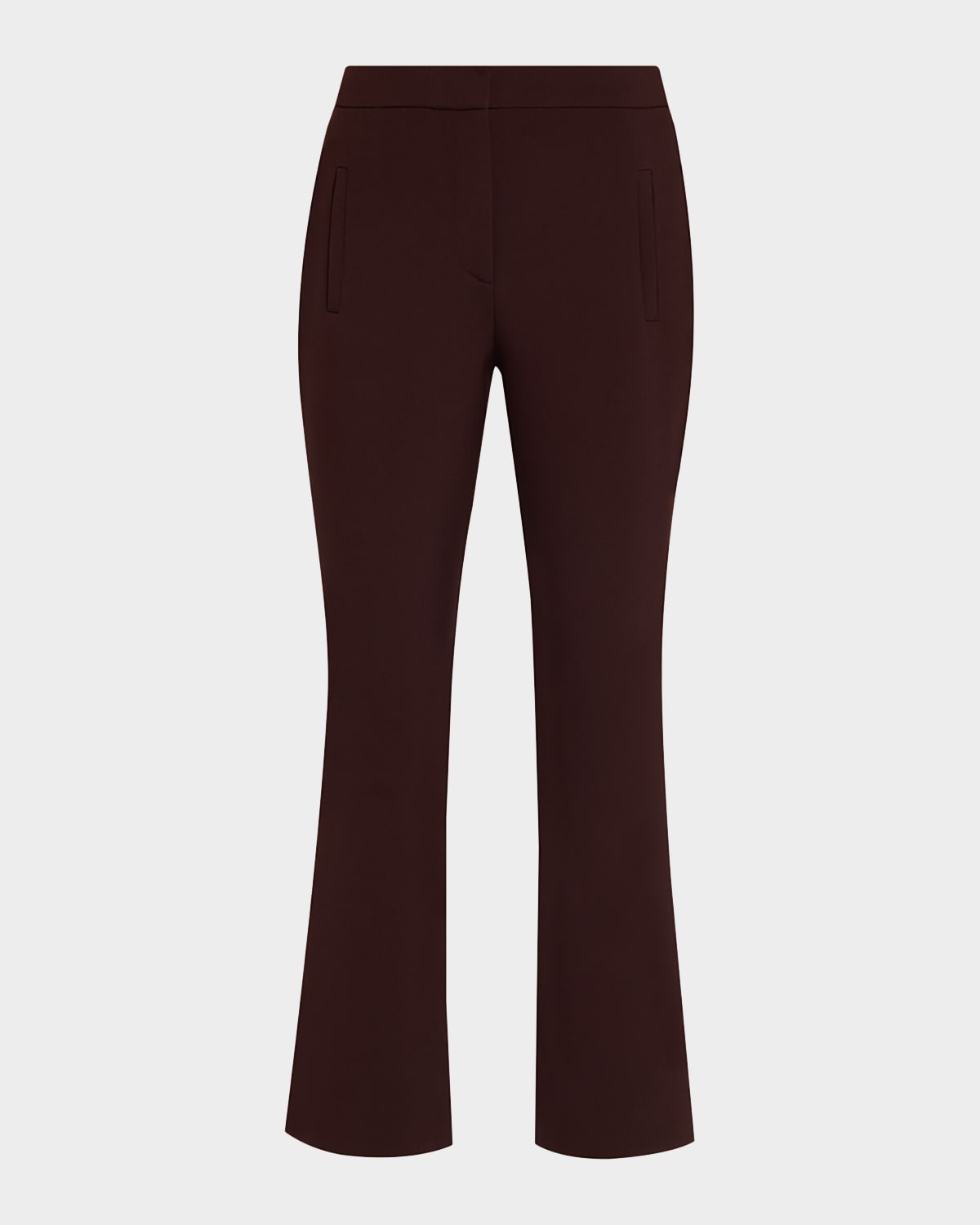 A signature Veronica Beard silhouette, the "Arte" pants, now updated in a rich red wine hue, are crafted from suiting fabric with subtle stretch. Approx. 10" rise; 27" inseam High rise Front and back welt pockets Fitted through the hip and thigh Cropped length Hook/zip fly; belt loops Polyester/viscose/cotton Lining: Polyester Dry clean Made in USA from imported materials