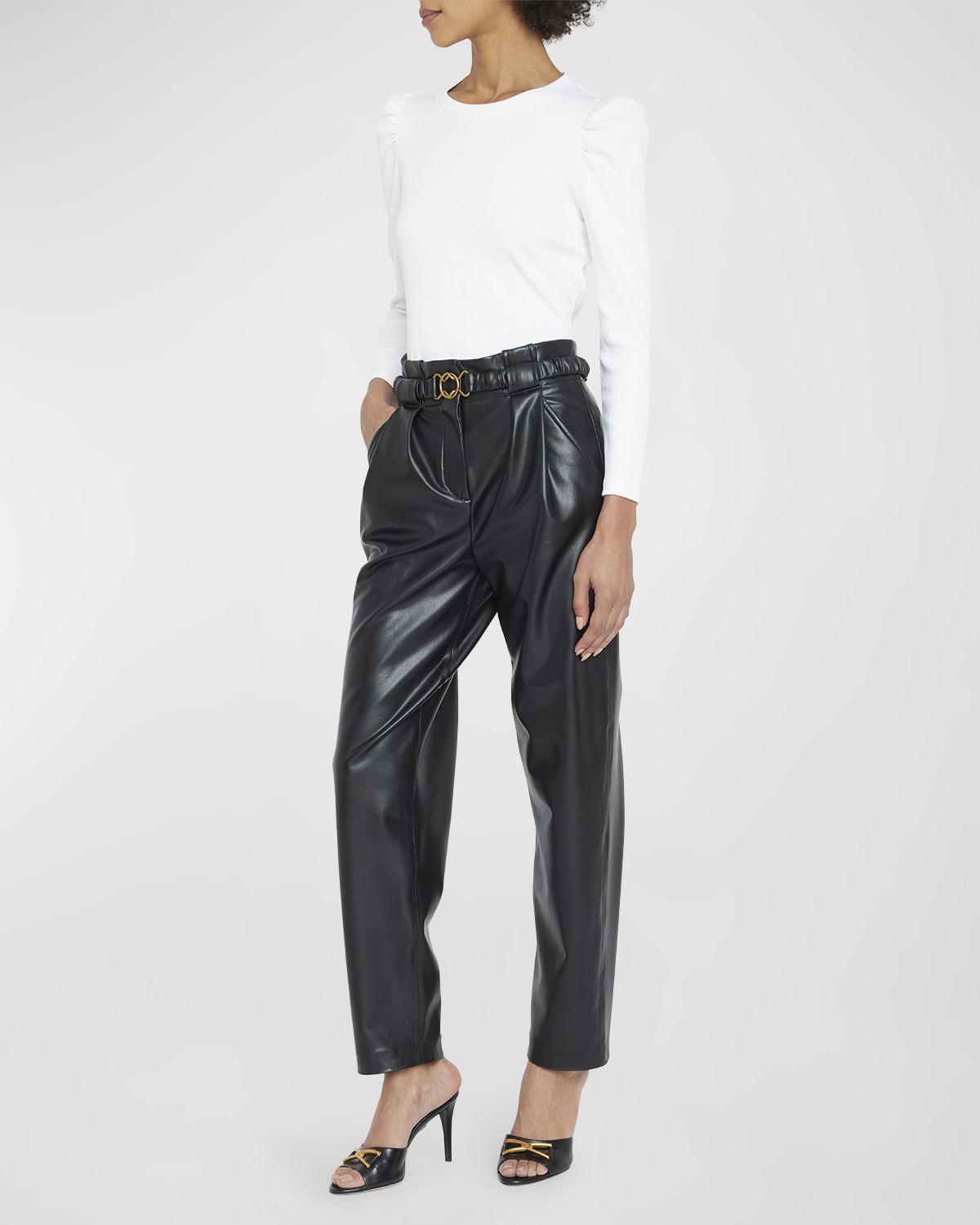 Veronica Beard Jeans "Britney" top in stretch cotton Crew neckline Bracelet puff sleeves Easy fit Hem sits at the hip Pullover style Cotton/elastane Machine wash inside out, line dry Imported
