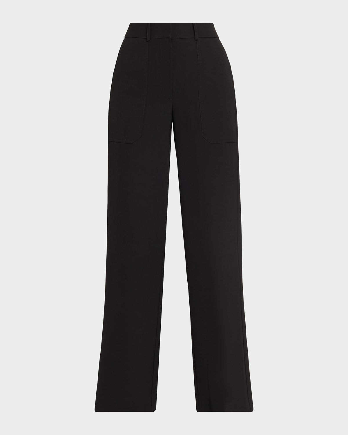 Elevated wideleg pants with tonal stitching by Veronica Beard. Approx. 11" rise; 34" inseam High rise Fourpocket style Pintuck front Tailored fit Full length Hook/zip fly; belt loops Polyester/elastane Lining: Polyester Dry clean Imported
