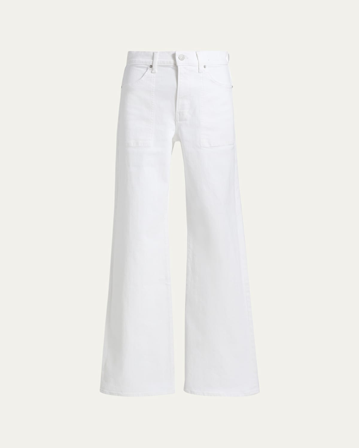 Veronica Beard "Crosbie" crisp white denim jeans High rise Fivepocket style Wide legs Full length Button/zip fly; belt loops Cotton/polyester/polyurethane Dry clean Made in USA