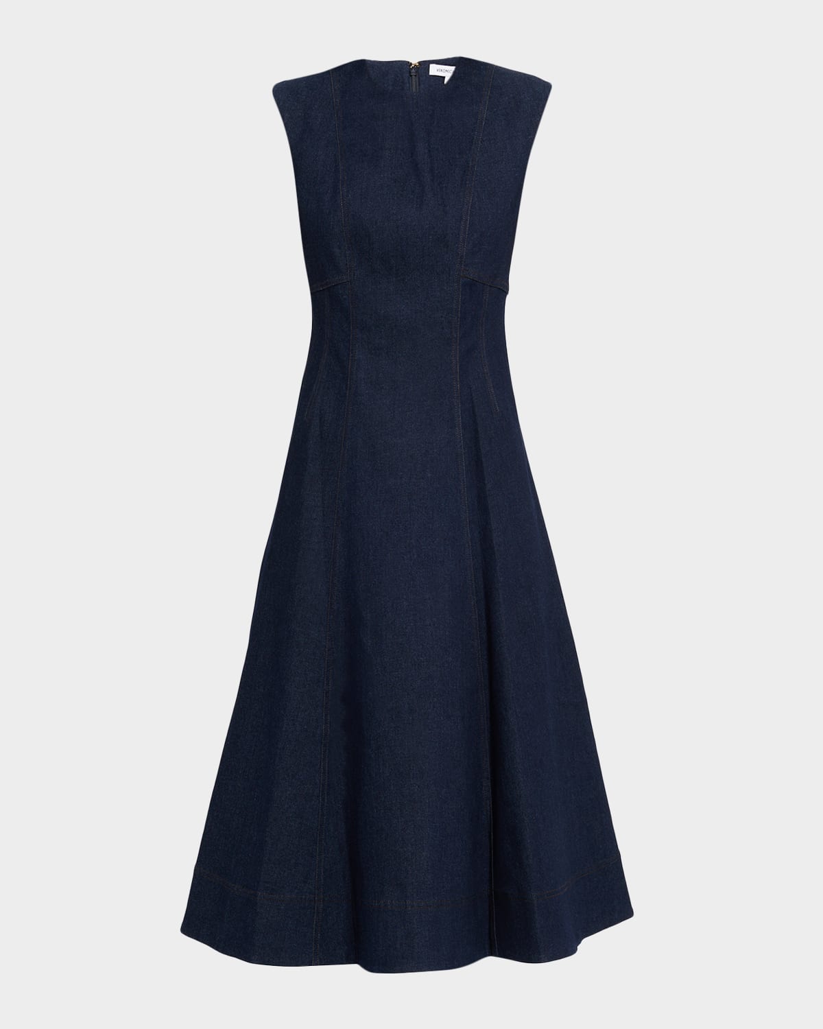 Crafted from signature stretch denim, the "Dulce" dress by Veronica Beard features waistdefining vertical princess seams Approx. 47.5"L from shoulder to hem Jewel neckline Sleeveless Hem falls below the knee Aline silhouette Center back zipper Cotton/polyester/elastane Unlined Dry clean Imported