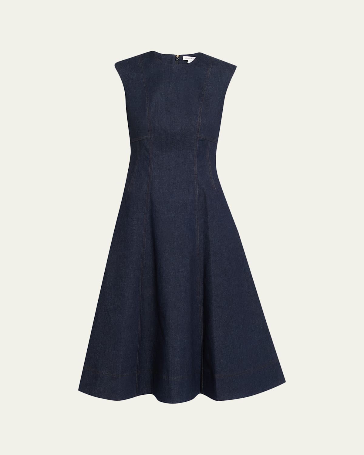 Crafted from signature stretch denim, the "Dulce" dress by Veronica Beard features waistdefining vertical princess seams Approx. 47.5"L from shoulder to hem Jewel neckline Sleeveless Hem falls below the knee Aline silhouette Center back zipper Cotton/polyester/elastane Unlined Dry clean Imported