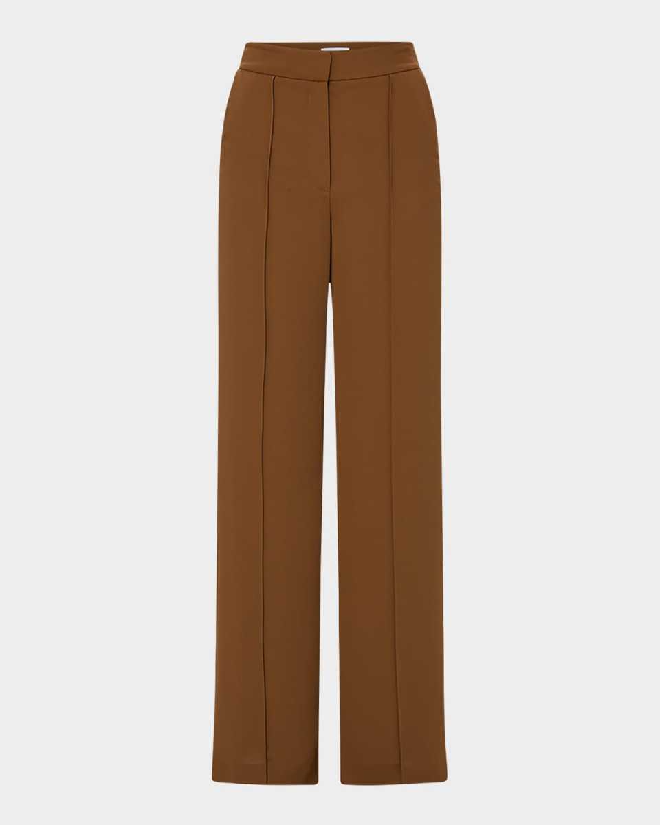 Veronica Beard "Edia" wideleg pants featuring a pintuck front Approx. 11.6" rise; 35" inseam High rise Side slash pockets; back welt pockets Tailored fit Full length Hook/zip fly; belt loops Polyester/elastane Lining: Polyester Dry clean Made in USA from imported materials