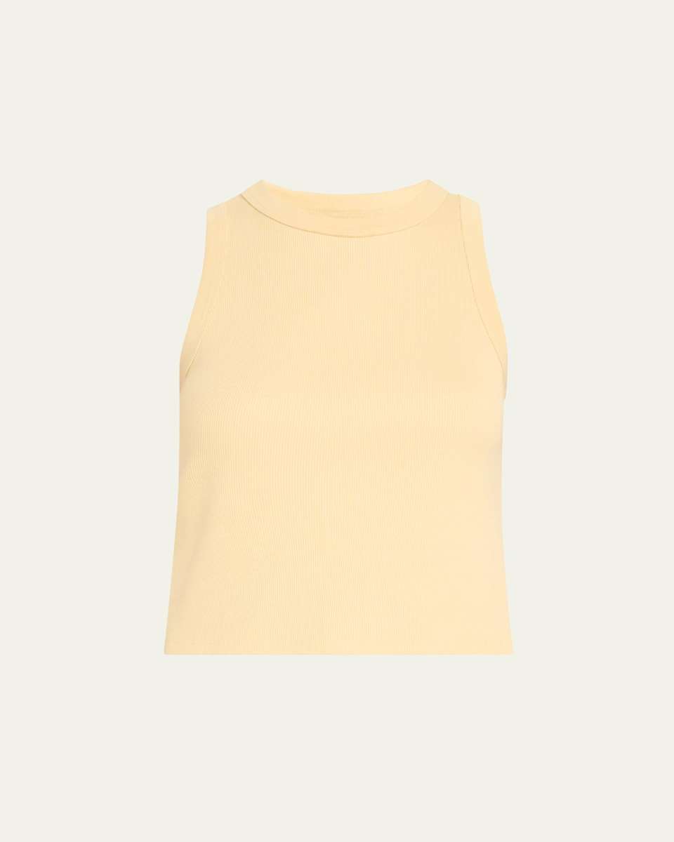 Veronica Beard "Jordyn" ribknit tank top Crew neckline Sleeveless Cropped fit Pullover style Cotton/elastane Machine wash Imported