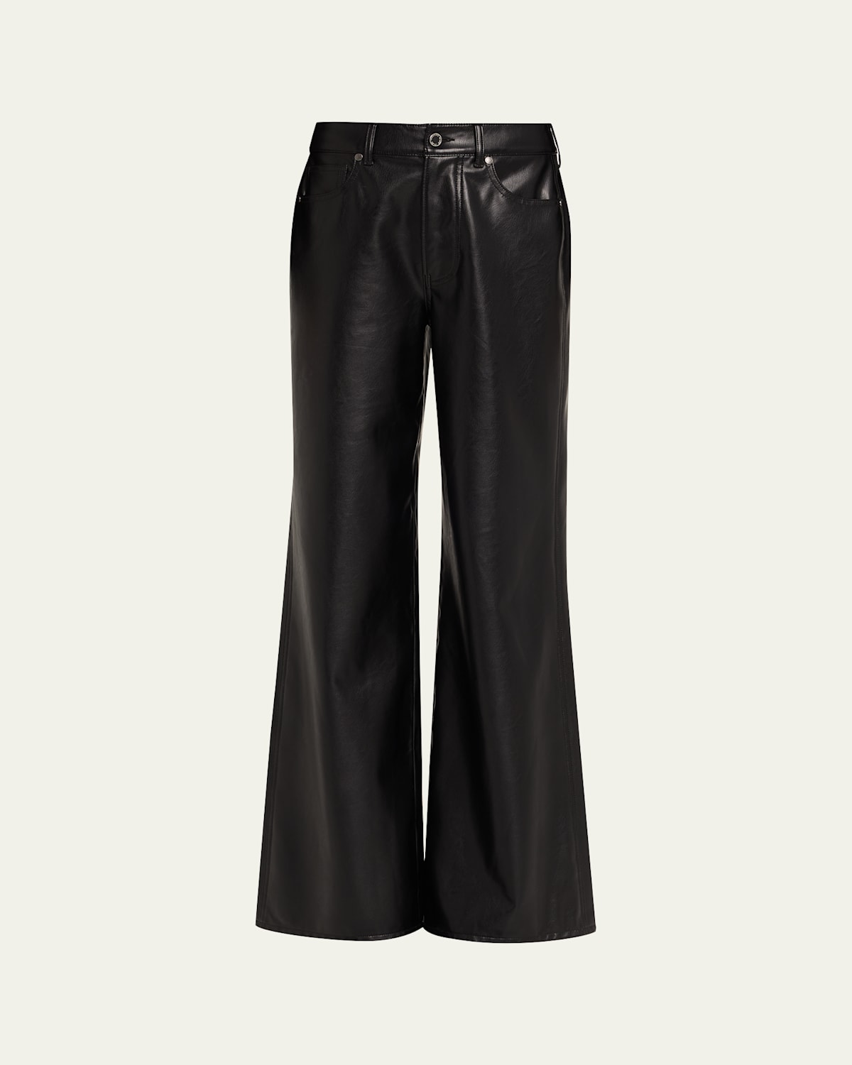 Veronica Beard "Kasey" pants crafted from a butterysoft vegan leather Approx. 11.5" rise; 32.5" inseam Midrise; sits high on the hip Fivepocket style Wide legs with a subtle flare Full length Button/zip fly; belt loops Polyester/spandex Hand wash cold Imported