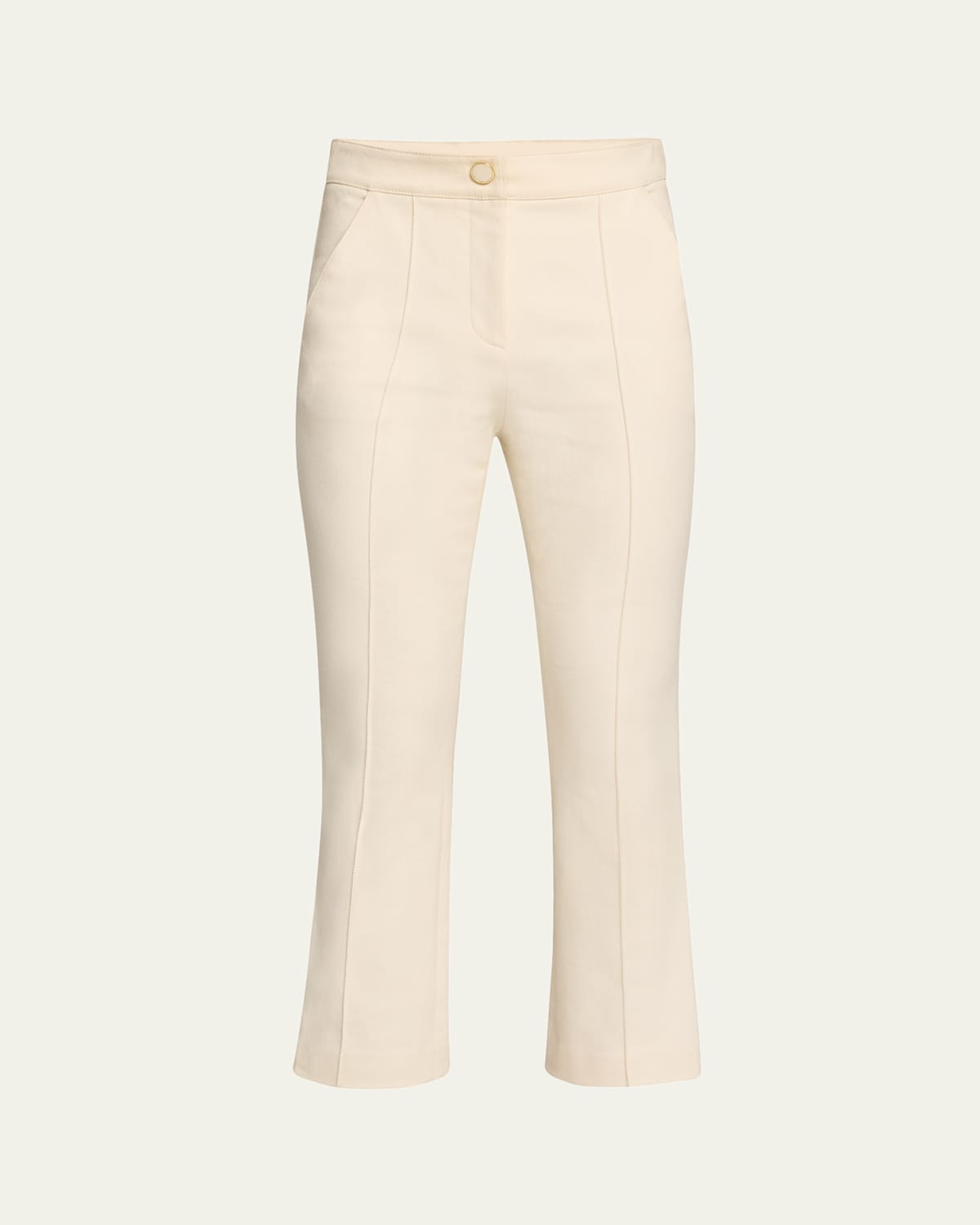 Veronica Beard "Kimra" straightleg pants with a pintuck front High rise Fourpocket style Slim fit Cropped length Button/zip fly; belt loops Cotton Dry clean Imported