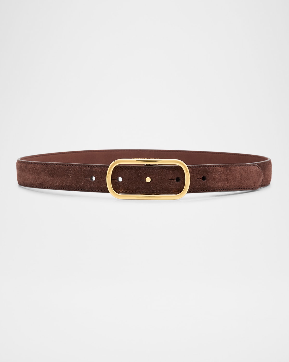 Veronica Beard "Loop" belt crafted from suede and lined with soft nubuck, defined by an oblong goldtone buckle Approx. 31"L x 1.0"W Adjustable fit Buckle closure Leather Professional cleaning recommended Imported