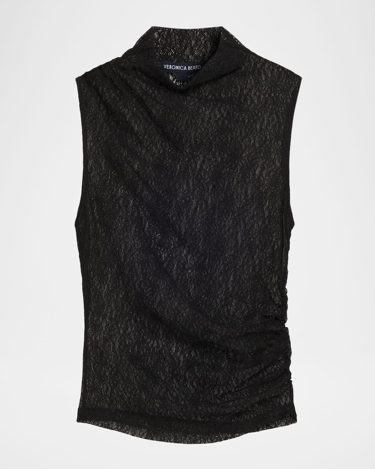An elevated take on the classic tank silhouette, the "Mylie" top by Veronica Beard is crafted from sheer floral lace for an ultrafeminine design Approx. 22"L from shoulder to hem Mock neckline Sleeveless Draped silhouette Hip length Slipover style Polyester/elastane Imported